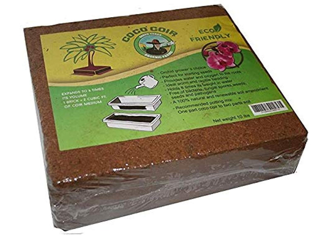 Green Texan Organic Farms Compressed Coconut Coir Brick, 11 Pound (lb) (11 Pound)