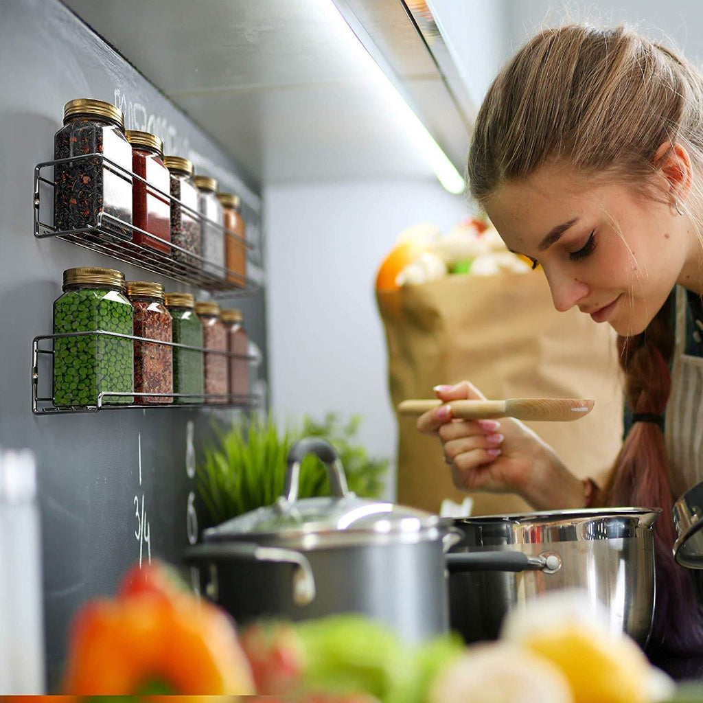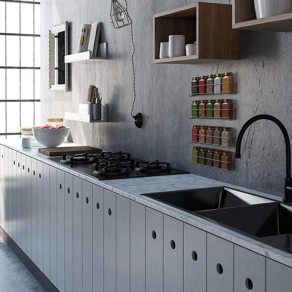 • Hanging Spice Rack Organizer: Set of 4 single-tier spice racks provides plenty of storage space. Each spice shelf holds up to 6 spice jars or medicines used daily. Place in kitchen cabinets, pantries, cupboards on walls or doors