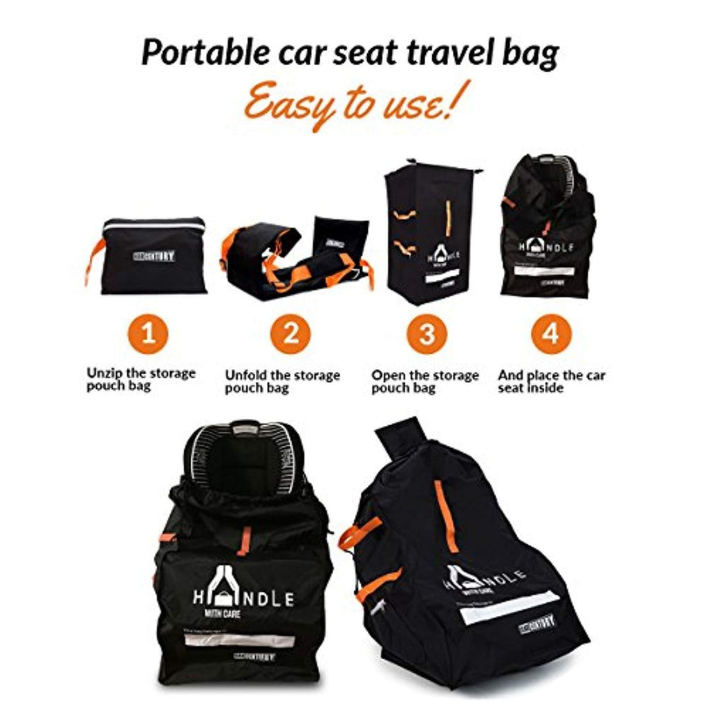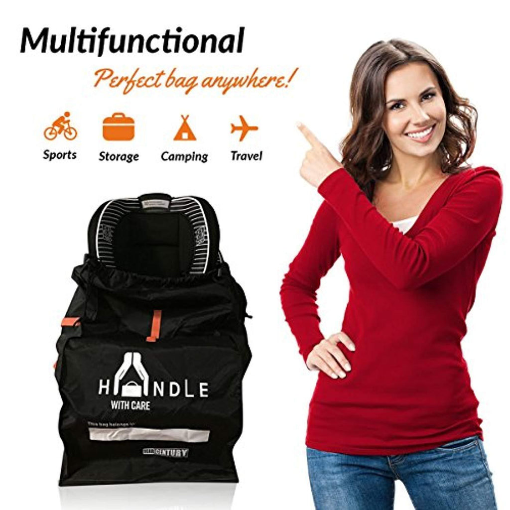 Heavy Duty Car Seat Travel Bag by Bear Century - Fit Most Carseat Models Including Backpack Straps, Side Pocket and Storage Pouch - Ideal for Airport Gate Check