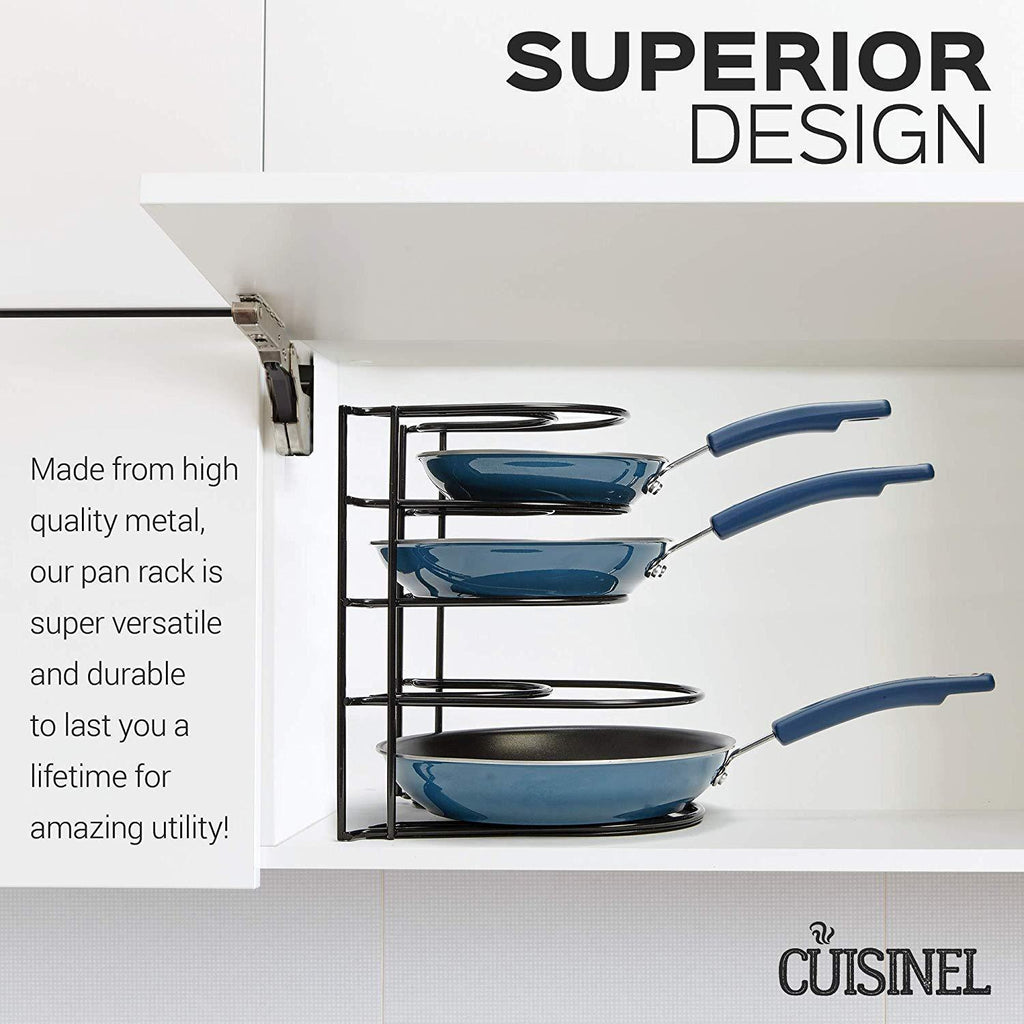 • KEEP YOUR KITCHEN ORGANIZED: A tidy kitchen is a happy kitchen - that’s why with our pan organizer, you’ll be on your way to sheer bliss by keeping all your pots and pans neatly organized at all times!