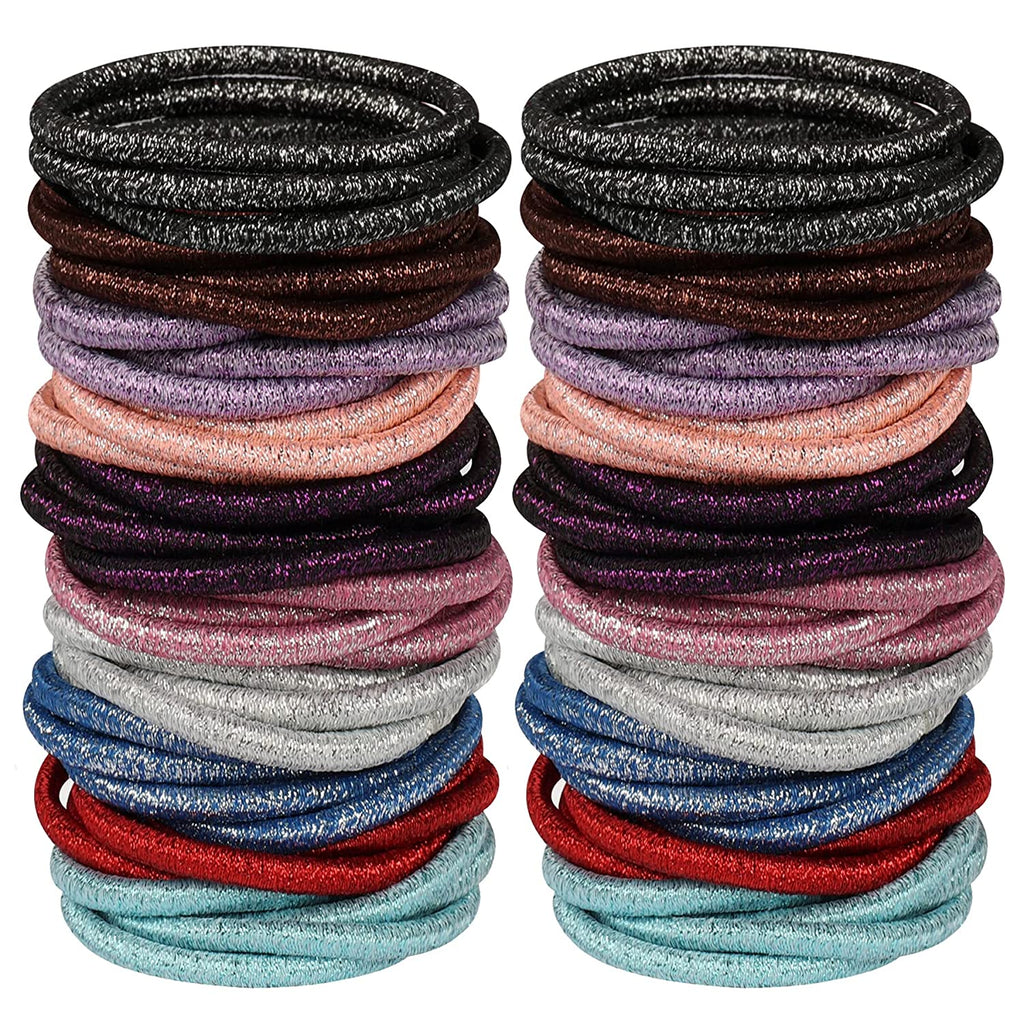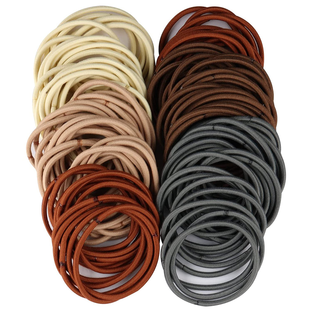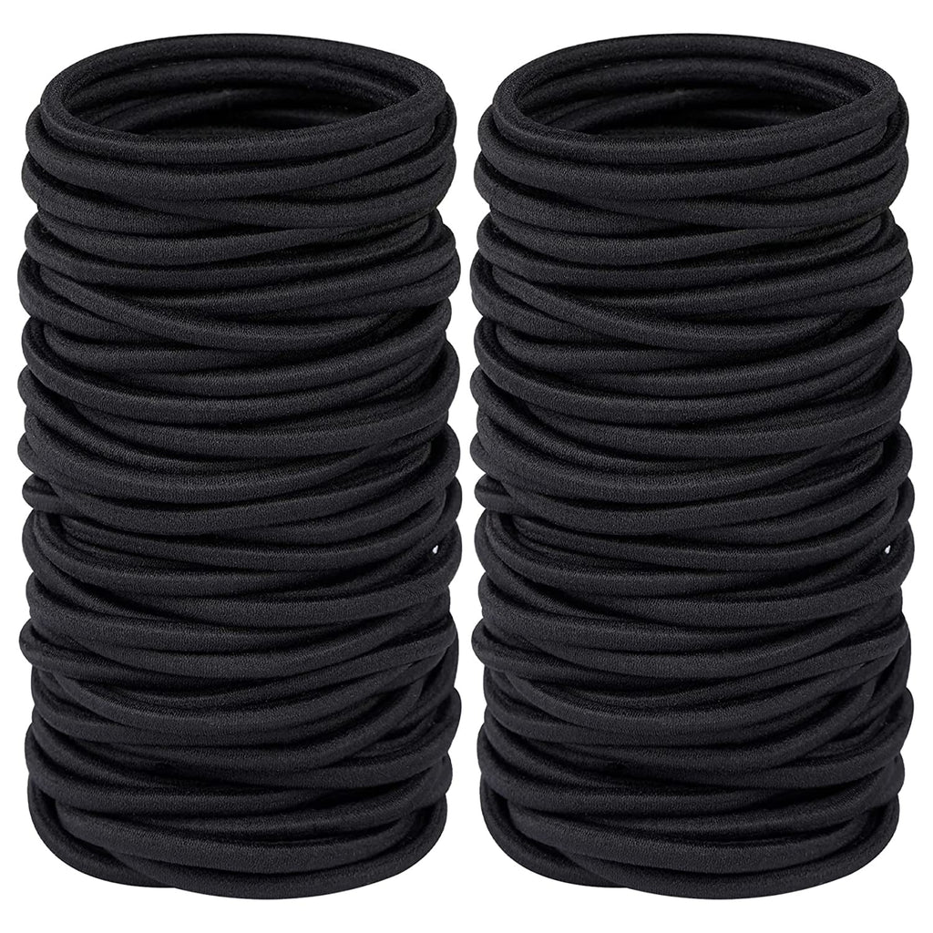 Hot&Sattion Hageolan Elastic Hair Ties for Thick Heavy and Curly Hair 120 Pcs, Hair Bands for Women's Hair Black Ponytail Holders Bulk (4mm)