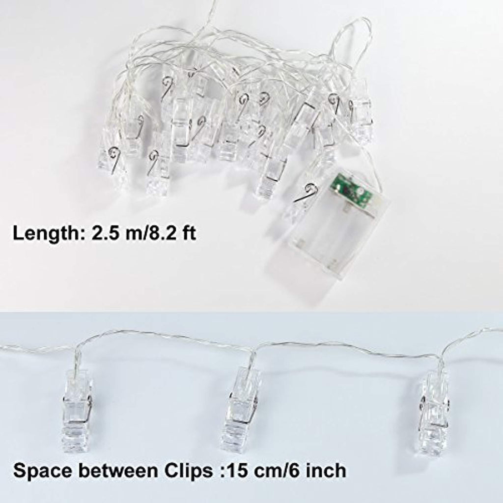 ideapro Photo Clip LED String Lights, 8.2 Feet 20 Clips for Photos Battery Powered Fairy Twinkle Light Strip, Home Party Christmas Decoration Birthday Wedding Party Festival Decor (Warm White)