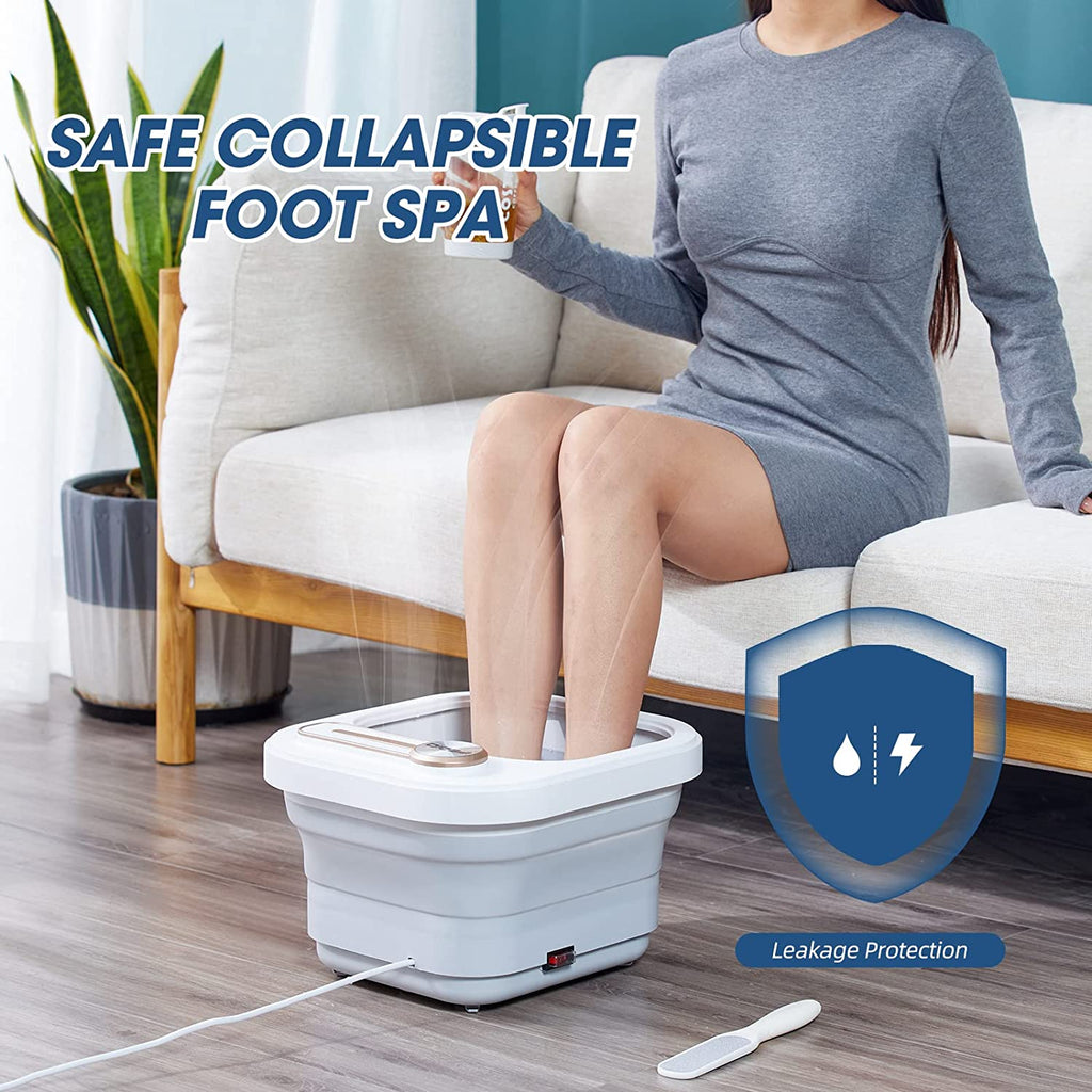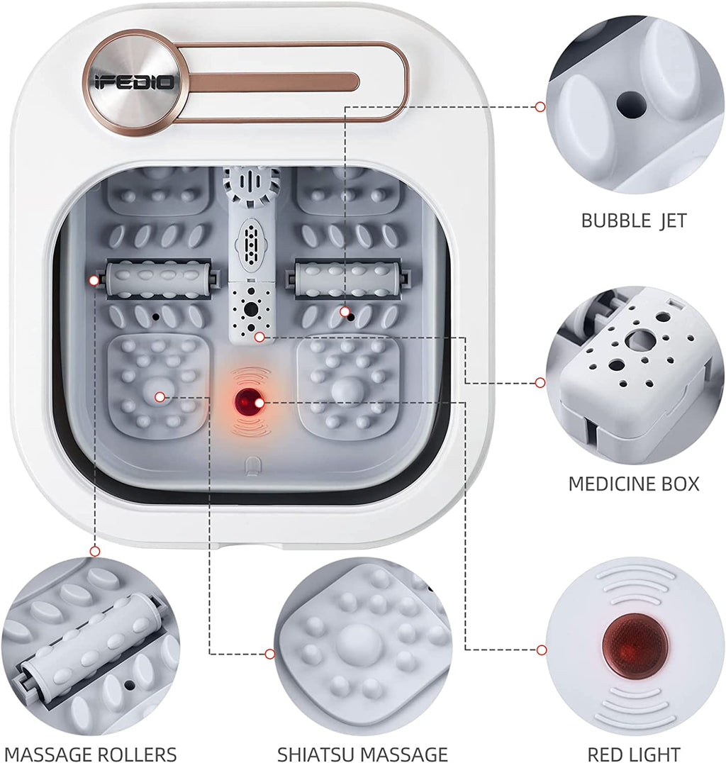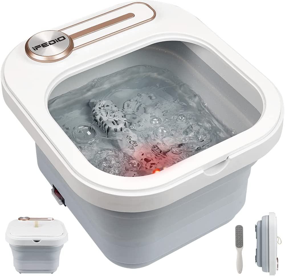iFedio Foldable Spa Bath with Heat Bubble Massage and Jets, Pedicure Foot Spa, Electric Foot Tub with Massage Rollers and Foot File, Portable Spa (White)