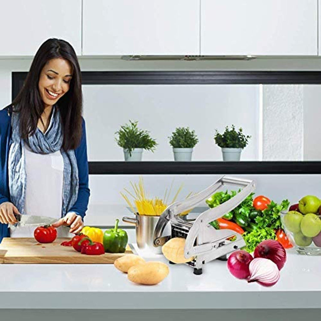 • Ergonomic handle makes everything so much easier to make homemade fries, just give the handle with a gentle push, you will have a whole potato’s worth of uniform fries, a perfect slicer for restaurant as well as homemade fries