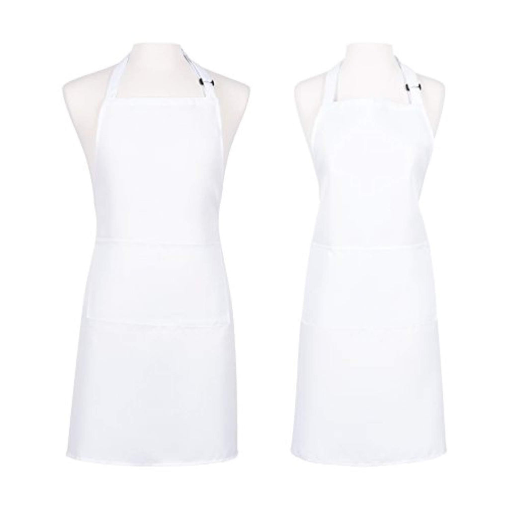 KAF Home 2 Pack Unisex Adjustable Water Resistant Apron - One Size Fits All Kitchen Chef Apron With 2 Large Oversized Pockets - Perfect for Crafting, Cooking, Baking, Painting, Gardening - White