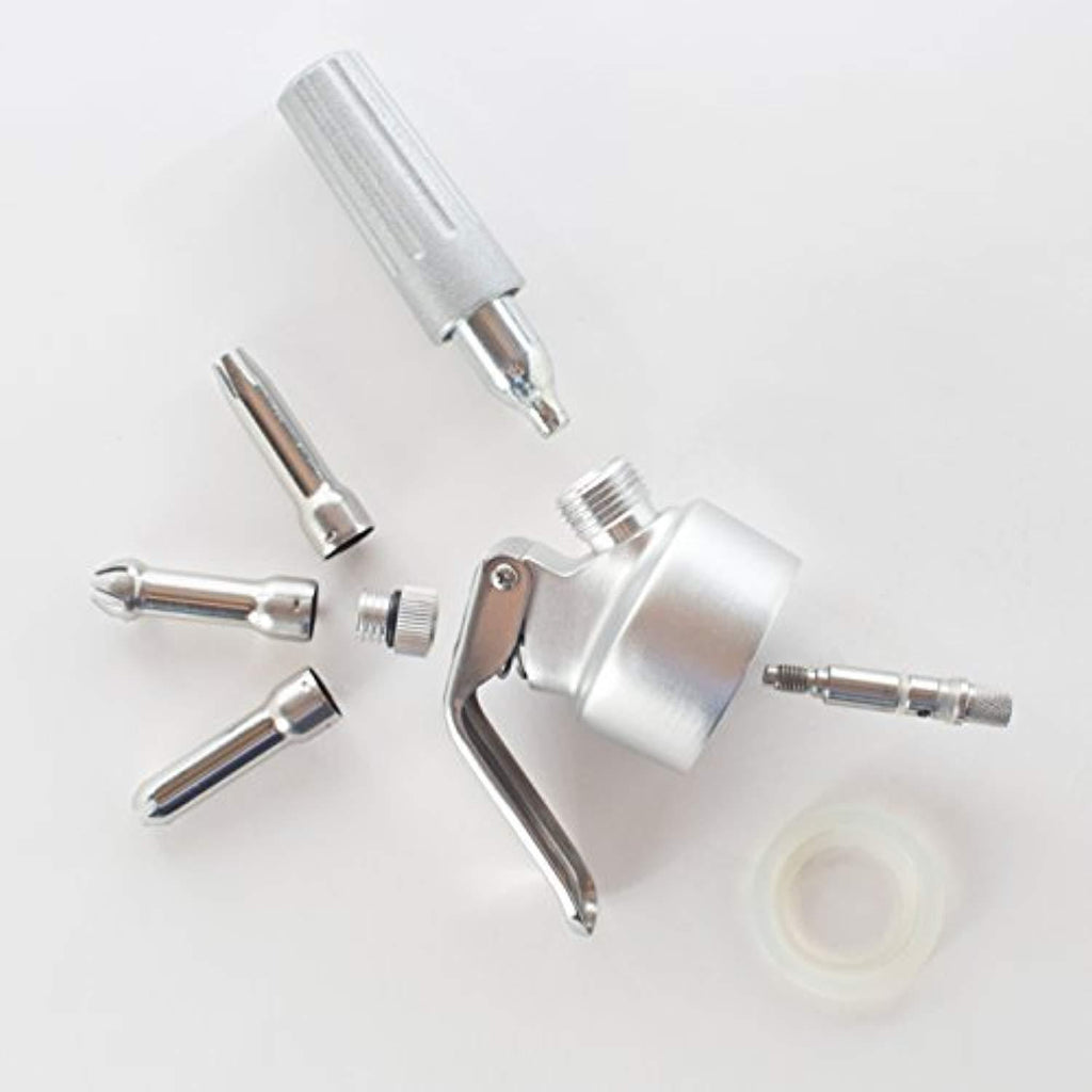 • STAINLESS STEEL WHERE IT COUNTS. The piston, piercing needle and nozzle adaptor are all made from stainless steel which provides a reliable and 'built-to-last' strength. You wont see visible wear and flaking on the stainless steel piston after just a few uses as you do with an aluminum piston. The 3 decorating tips are also made from stainless steel. The canister is made from high-grade aluminum, making it durable and easy to handle.