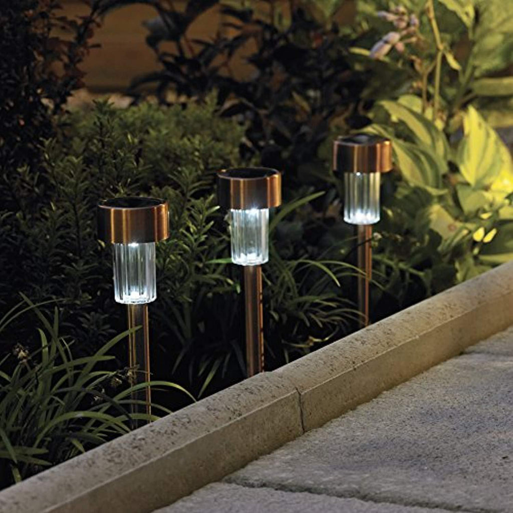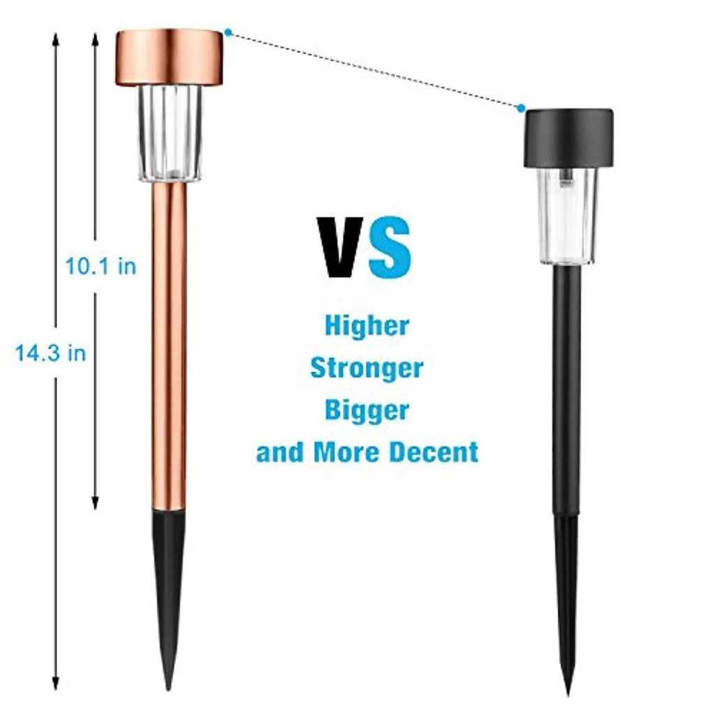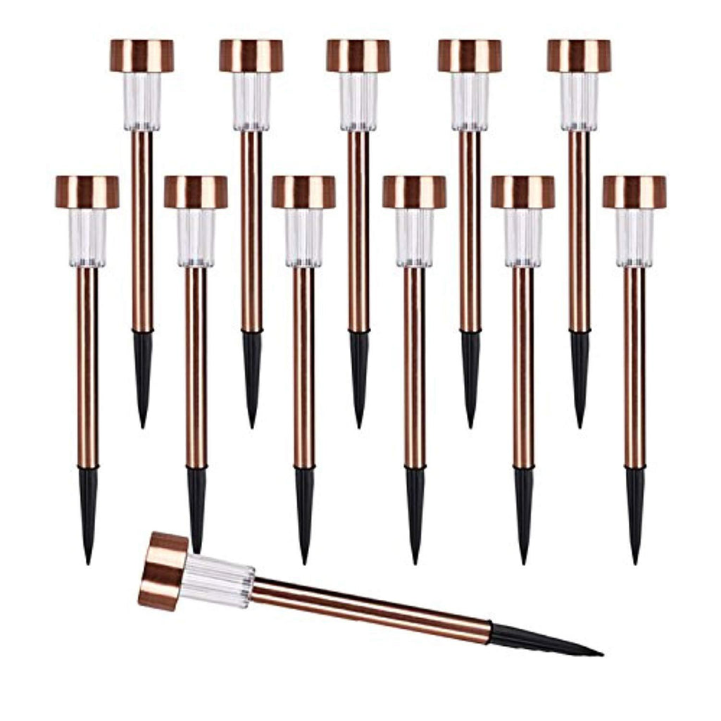 • CONCISE AND ELEGANT:High quality Stainless Steel light design.Clear plastic lens provides pretty light effect on the ground.Amazing copper finish makes your garden more beautiful.