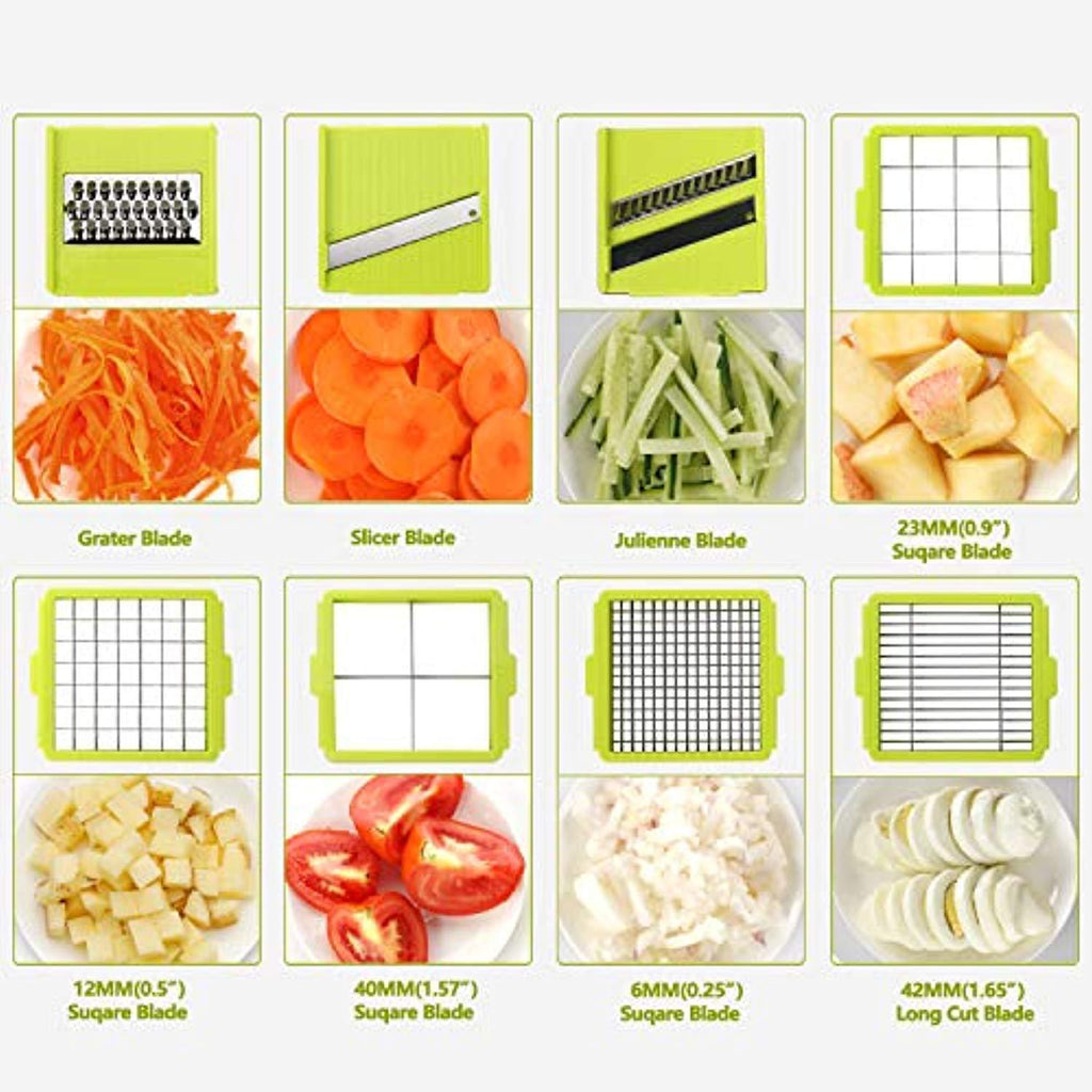 Kitchen Food Chopper Slicer Dicer Cutter: Vegetable Greater and Onion Chopper with 8 Stainless Steel Blades, 30% Heavier Duty Multi and Cheese Cutter – Food Dicer with Storage Container
