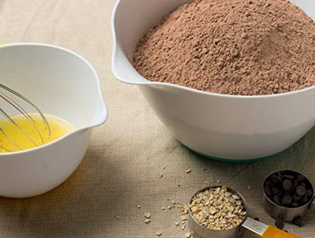 • NON-SKID BOTTOM – The non-skid rubberized bottom of the mixing bowls will make your life easy as you could mix your cakes or any other food using an electric mixer or by hand without the risk of slipping or skidding on the table top. Perfect for homes with kids and pets.