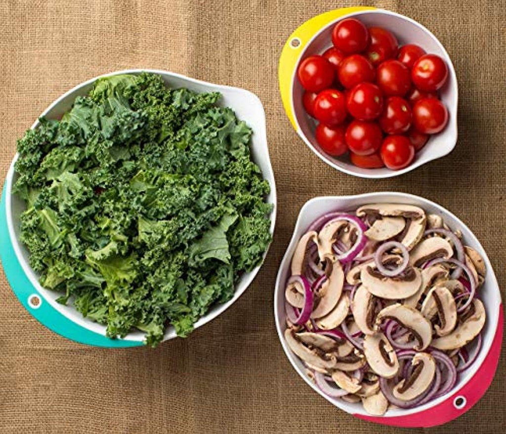 • EASY GRIP HANDELS – Have a great grip on the bowls while mixing salads, baking cakes, and for all your kitchen needs, with this non slip rubberized handles. This would be a great plus for all, especially for elderly and kids.