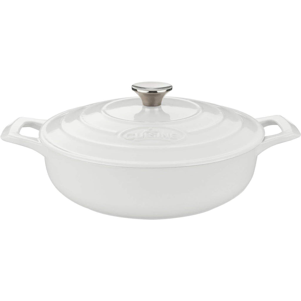 • Cast iron construction with fine enamel exterior finish for oven or stovetop (including induction)