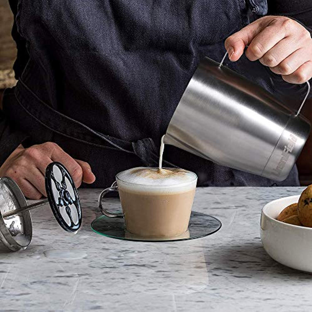• ⭐【1.7MM 3-Spot-Welded Handle, Built to Last】 With Q.C. Standard: AQL MA/MI = 2.5/4.0. All 1.7MM spot-welded handles of steaming pitchers, which are at least 50% wider than other milk steaming jugs, are 100% Tension Test Report Passed. That makes sure you get the top quality milk frothing pitcher on the market.