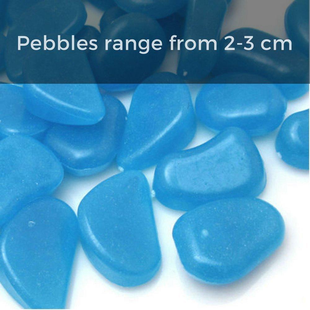 • GREAT VALUE: Each bag of glowing stones comes with 300 glow pebbles which will illuminate large areas such as gardens, flower beds, and backyard paths. Each luminous pebble is approximately 2-3 cm. So long as they get sun or bright indoor light, they'll light up night after night.