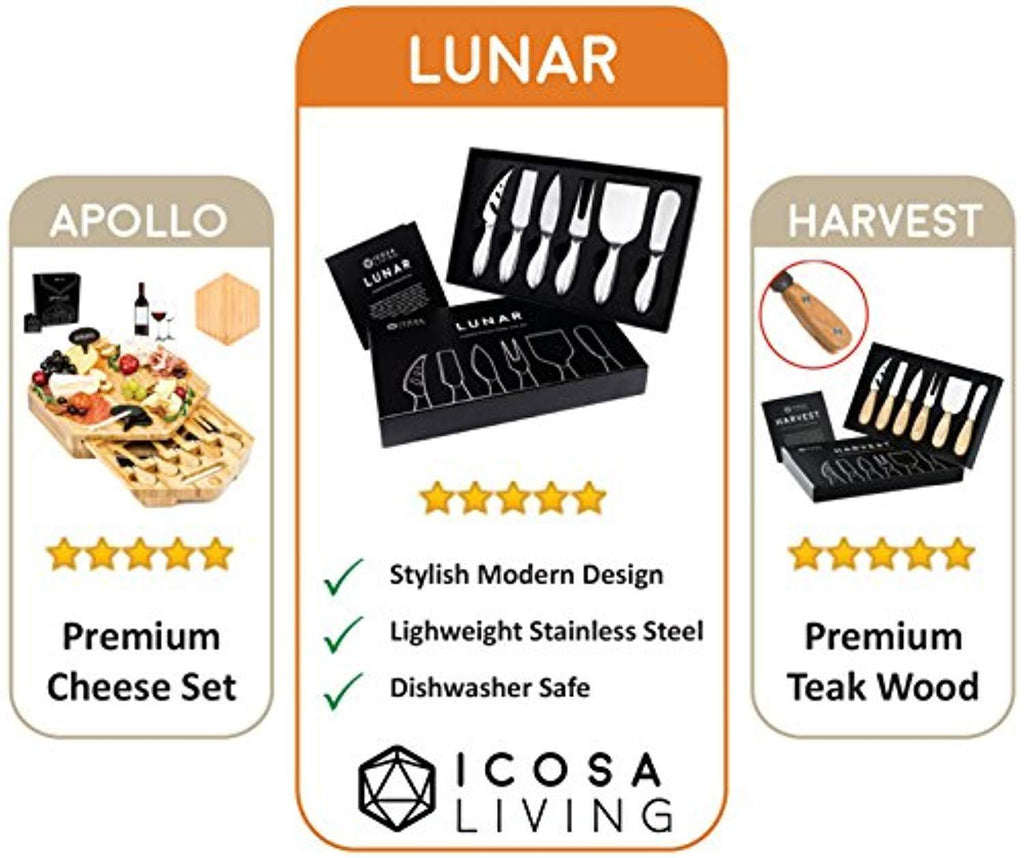• ▶ PERFECT GIFT FOR ANY OCCASION: Who doesn’t love cheese? The LUNAR Cheese Knives comes delivered to your door in our elegantly designed box – packaged and ready for a wedding, bridal shower, housewarming or a just-because present!