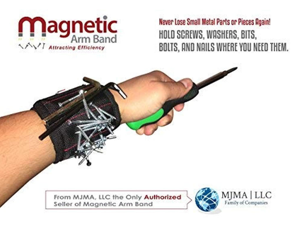 Magnetic Arm Band's Magnetic Wristband - Strong Neodymium Magnets embedded throughout wristband for holding nails, screws, bits, fasteners, washers, bolts, small tools, and much more