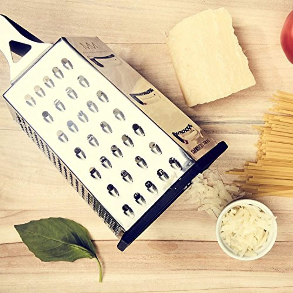 maison maison Cheese Grater - 6 Sided Stainless Steel, Best for Cheeses, Parmesan & Vegetables, Rubber Handle & Non-Slip Base