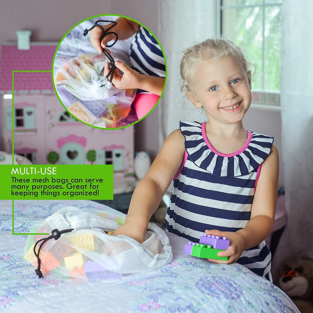 • 🌍 MULTIPURPOSE USE - Our reusable produce bags are not just for your groceries. They can also be used as an organizer for laundry and toys. They also make a pretty effective, sand-proof beach bag.
