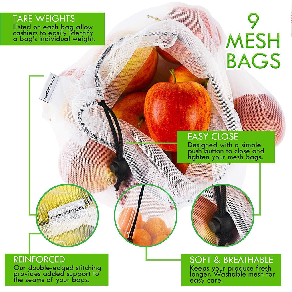 • 🌍 SUSTAINABLE, ENVIRONMENT-FRIENDLY ALTERNATIVE - Bring our reusable mesh bags whenever you go shopping for fruits and veggies. Now's your chance to ditch plastic, saving both money and the Earth.