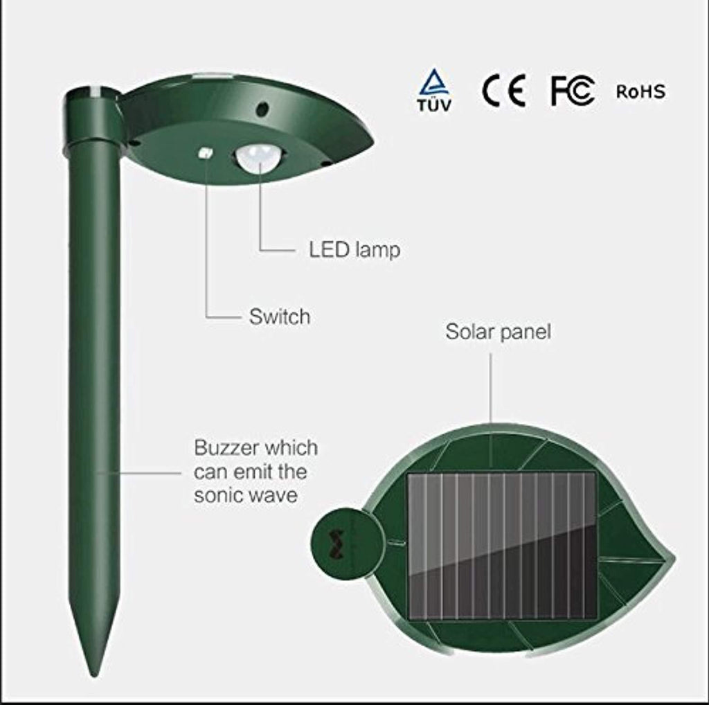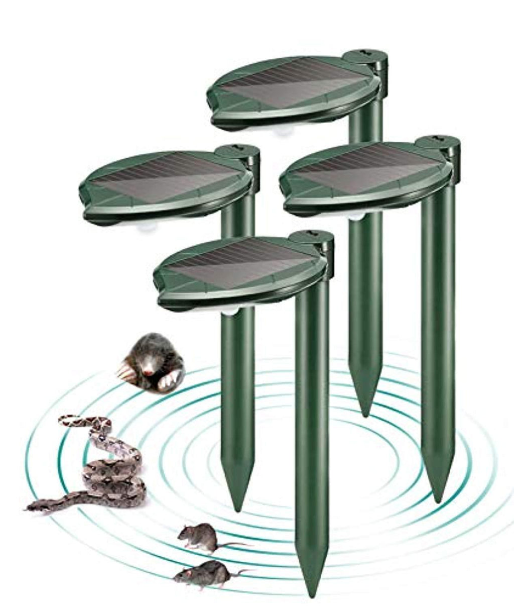 • THEORY: This Upgraded Solar Snake repellant Ultrasonic Outdoor vibrates and emits 400-1000 HZ variable low-frequency sonic pulses every 40-50 seconds to repel burrowing rodents living underground. It is safe for use around pets and children. No chemicals, no poison, no sprays or traps, no dead animal; Application: Farm, Garden, Park, Lawn, Yard, etc. Repel: Mole,Snake, Rodent, Rat, Gopher.