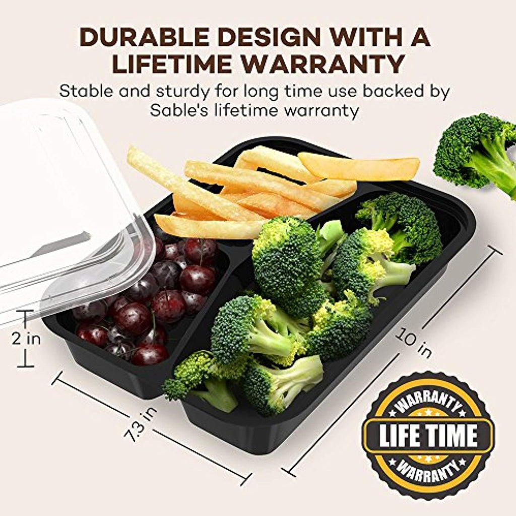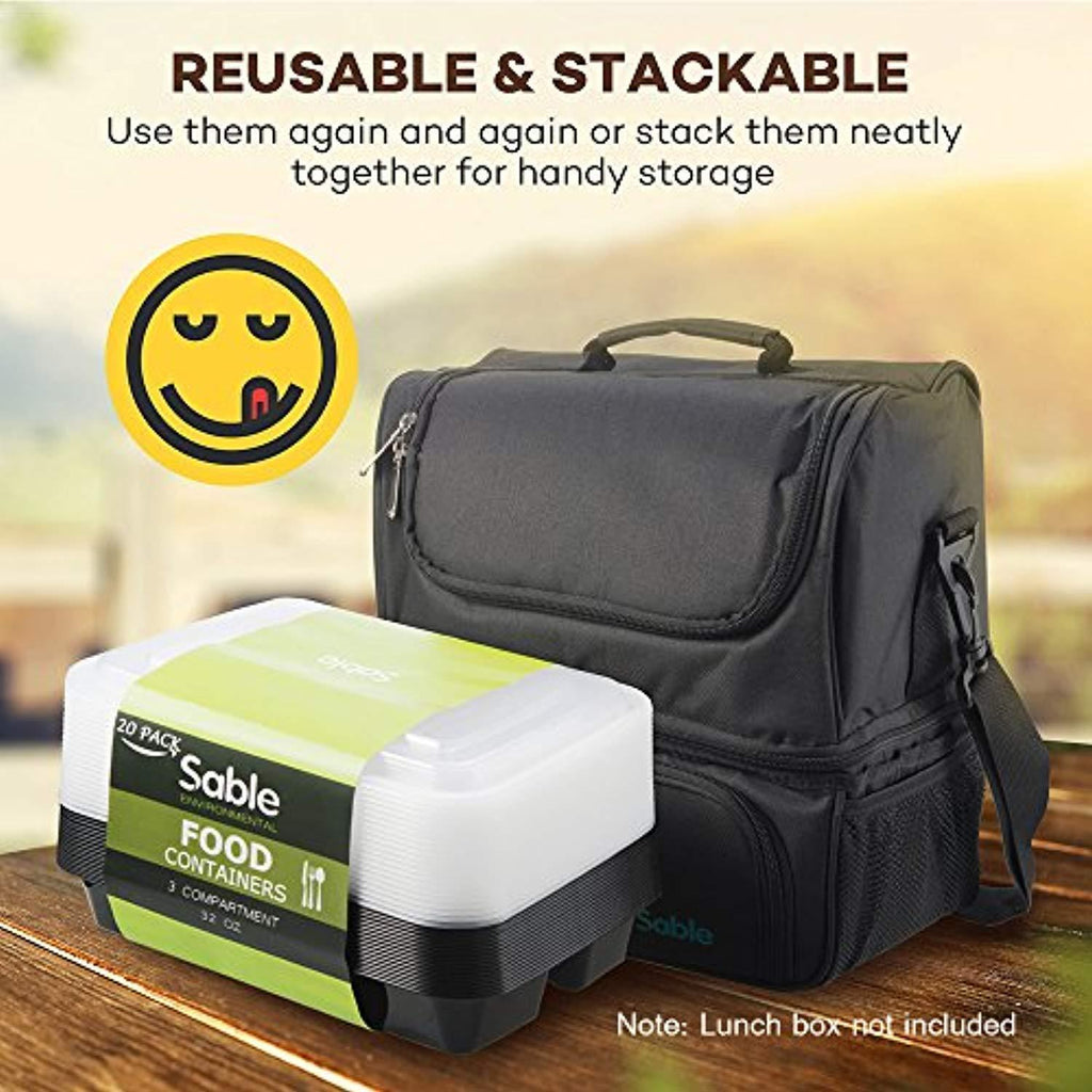 Meal Prep Food Containers 32 oz (20 Pack), Sable 3 Compartment Bento Lunch Boxes, Reusable Organization Cases, BPA Free (FDA, SGS & LFGB Certified, Heat and Cold Resistant, Stackable for Storage)
