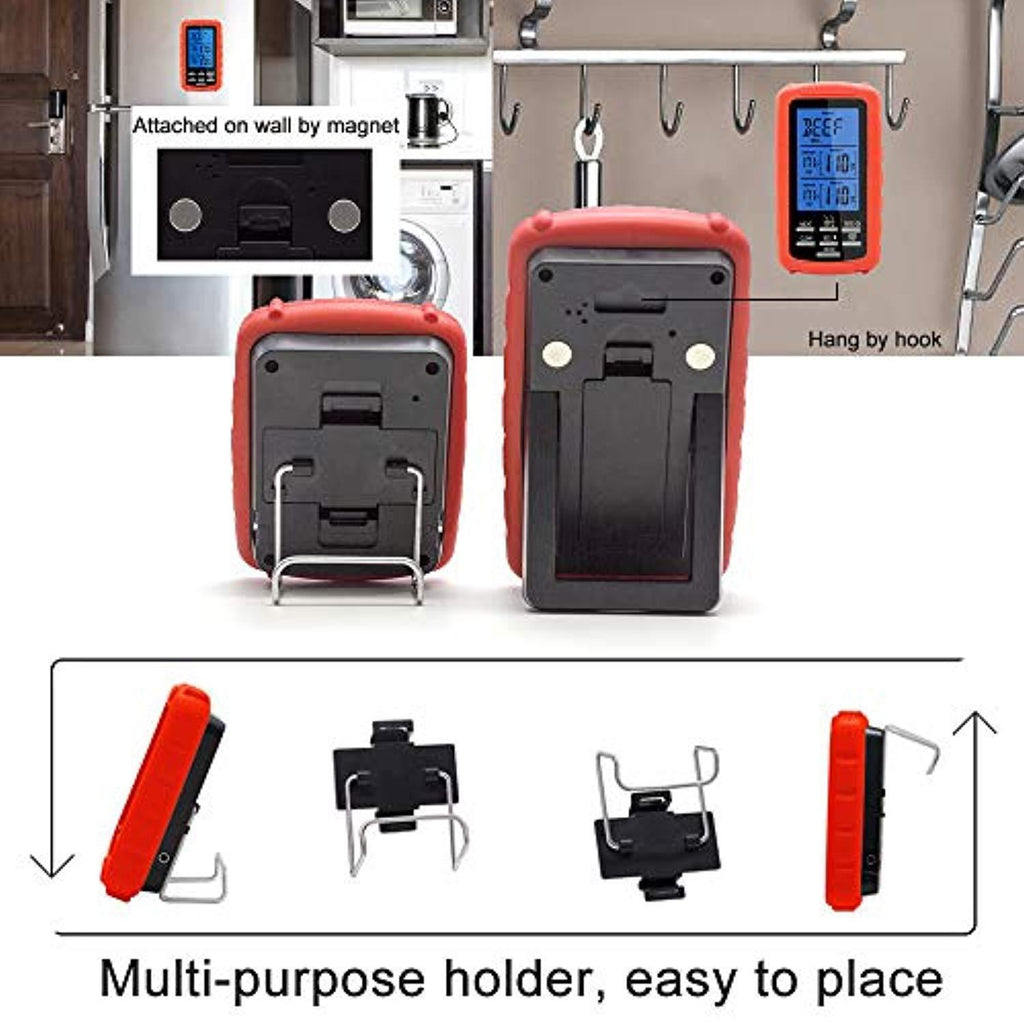 • 【Hassle-Free Setup, Easy to use】Digital display temperature, clear and accurate, Easy to use, no synch required, say goodbye to the tedious setup steps; Large LCD displays both food and oven temps and timer for the most intuitive experience; Back-lit for use in low light condition