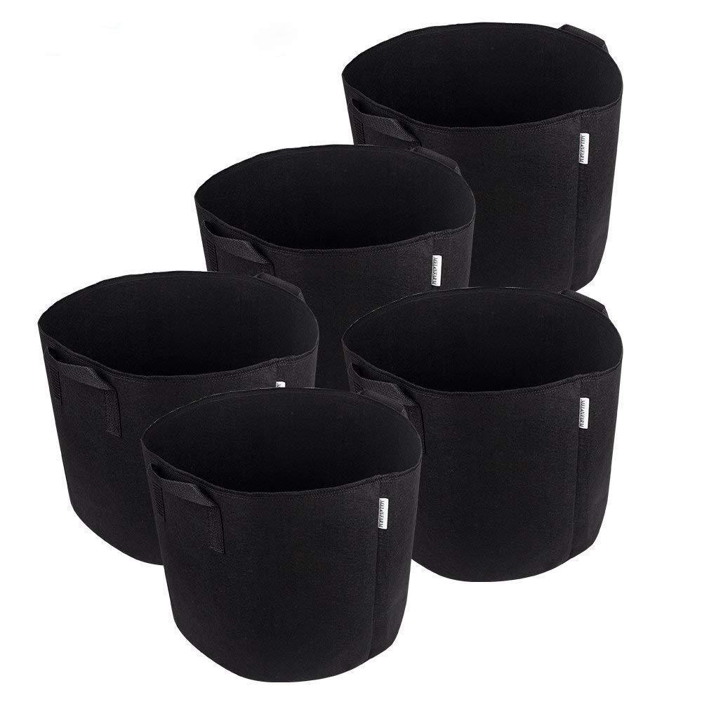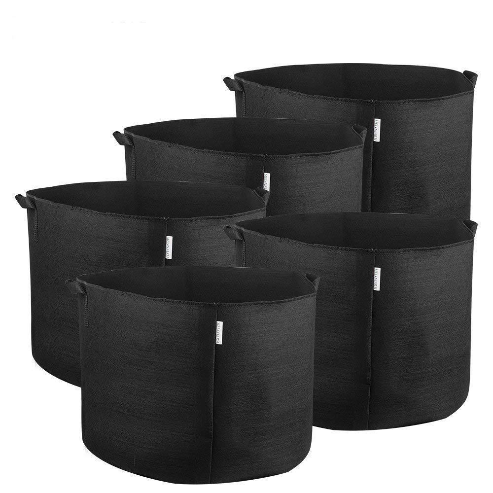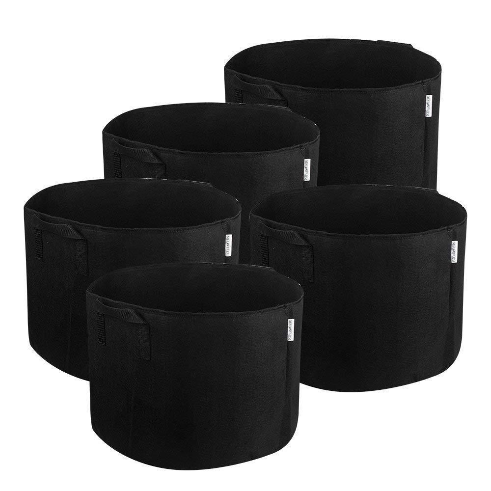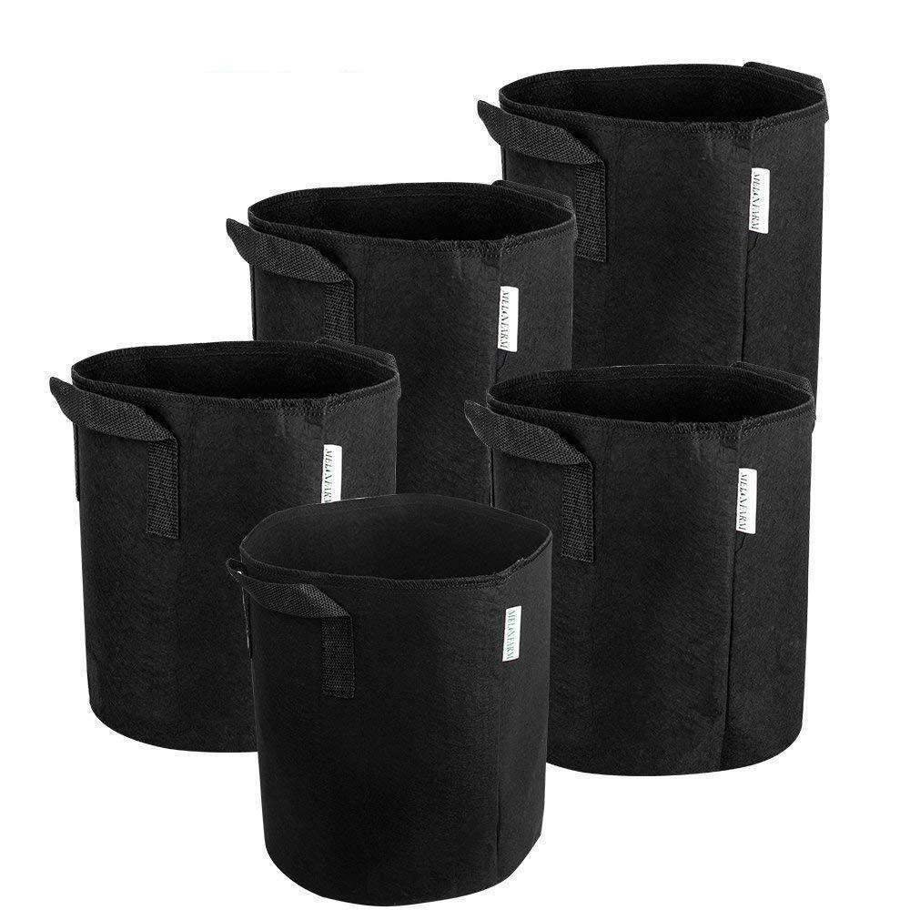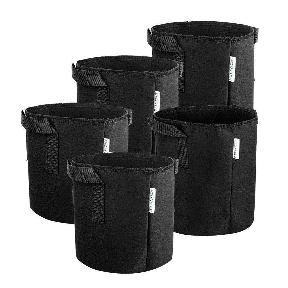 MELONFARM 5-Pack 15 Gallon Plant Grow Bags - Smart Thickened Non-Woven Aeration Fabric Pots Container with Strap Handles for Garden and Planting