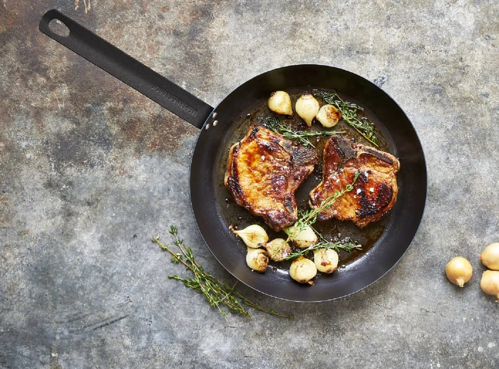 • Lightweight and quick heating carbon steel delivers cast iron performance without the weight or the wait