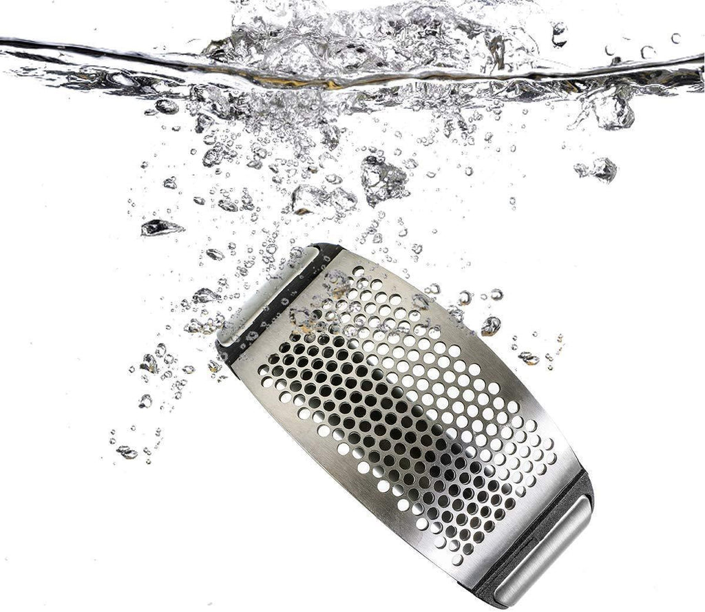 • SUPER EASY CLEAN UP AND STORE - Because the garlic collects on the surface of the rocking garlic press , there are no extra dishes to clean.