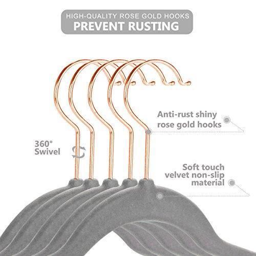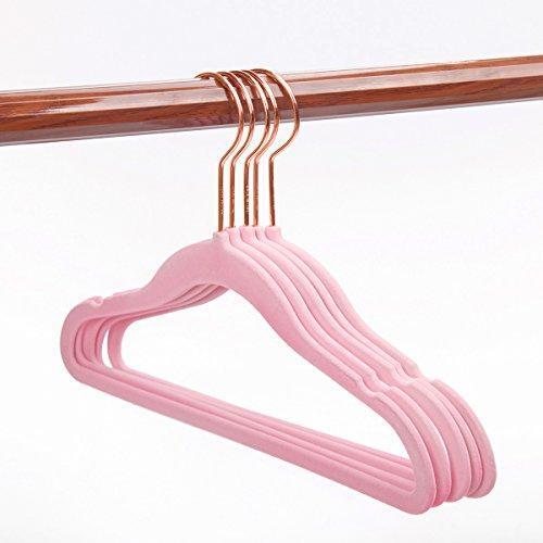 • ✔【Kids& Baby Standard Size】- (LxWxH): 11.75"x0.2"x7.5" inches.Made of Top Quality ABS Plastic, Eco-friendly Pink Nylon Flocked, Rose Gold Hook/Copper Hook.VALUE PACK of 50 pcs ✔【Swivel Rose Gold Hooks】- can be 360 degree rotated, which easy sorting of clothes no matter which direction you hang your clothes, strongly attached to our durable hanger so the hook doesn't detach or snap easily