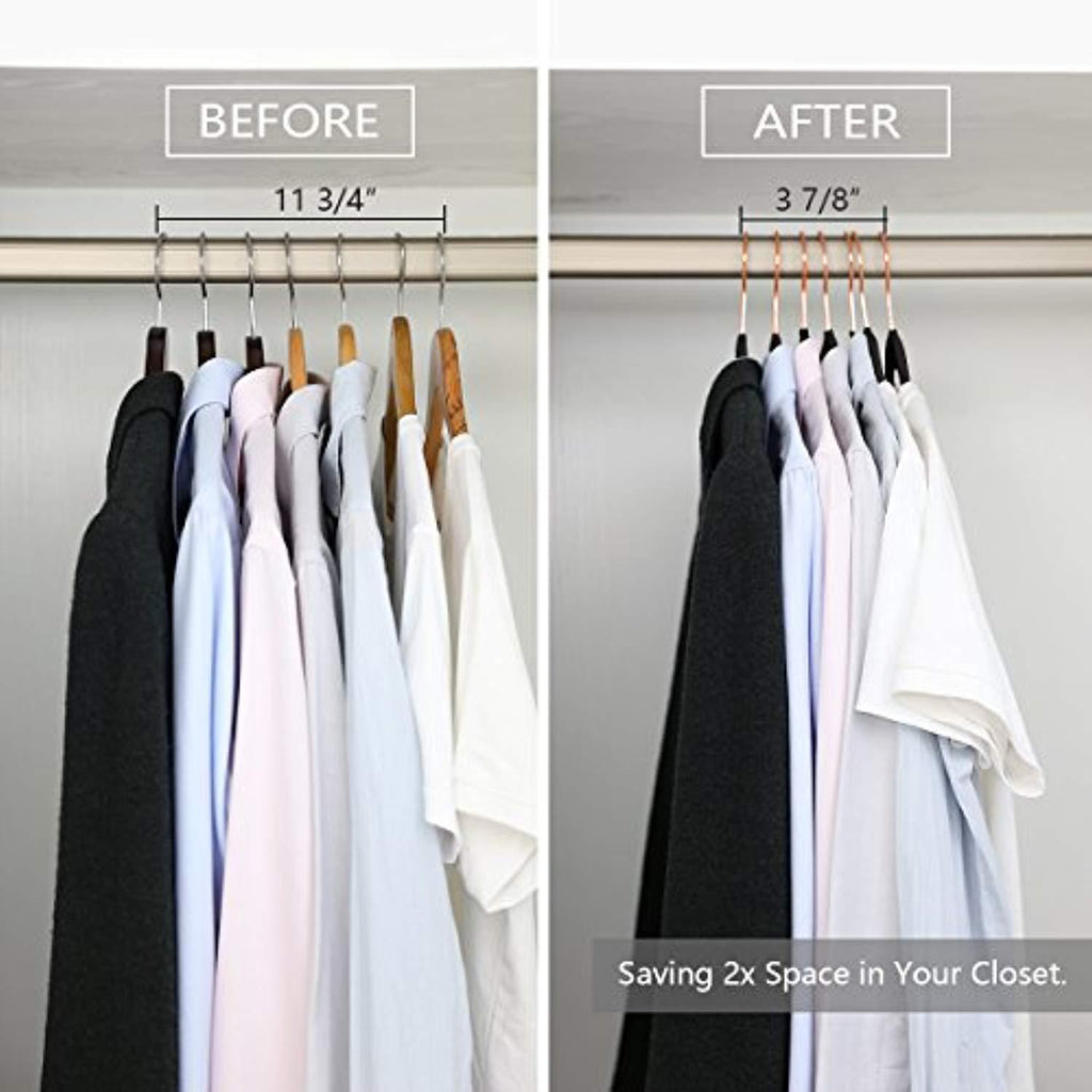 • ✔【Nonslip】 - Supreme soft luxurious velvet flocked instead of plastic or metal leaves no crease on the pant when you fold them over.Prevents slippery or wide neck clothes from slipping off the flocked hangers, no shedding or fading on your white clothes with latest flocking technique. Great coat hangers for suits, shirts, coats, sweaters, skirts, dresses and pants etc