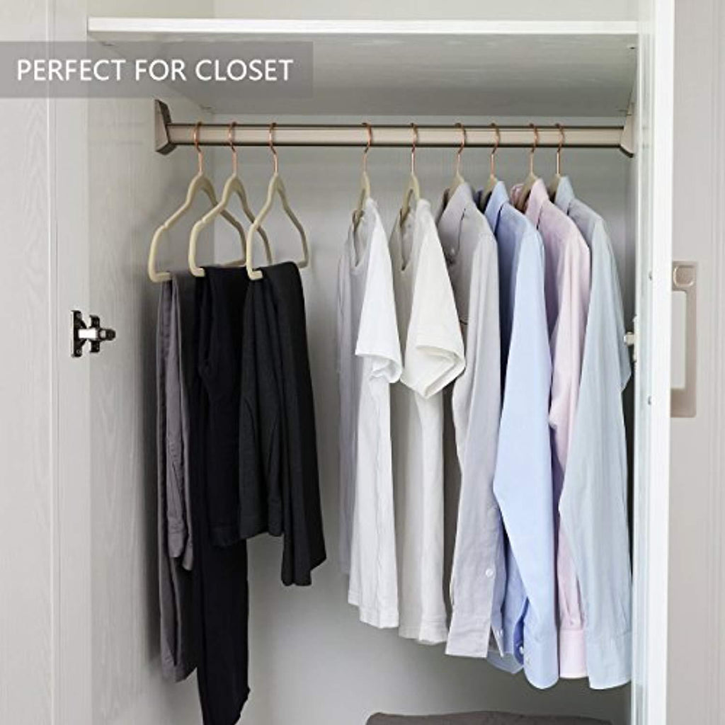 • ✔【Double Maximize Closet Space】 - Designed ivory velvet hangers Increases Closet space by as much as 50 percent.The slim and sleek design felt hangers works for your closet efficiently, maximizing space and adding class, helping you organize your wardrobe in the most space efficient manner