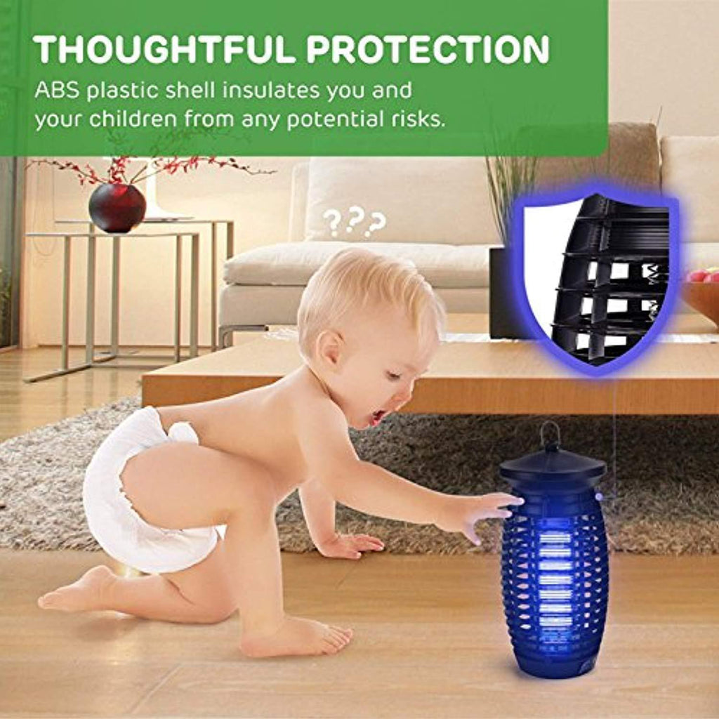 • DESIGNED FOR SAFETY - The user-friendly fire-resistant plastic shell of our bug zapper protects your family members from blocking fingers at the grid. Eco-friendly for your house and surroundings. Non-toxic, non-radiative, green and safe for human beings, especially for babies and pregnant women.