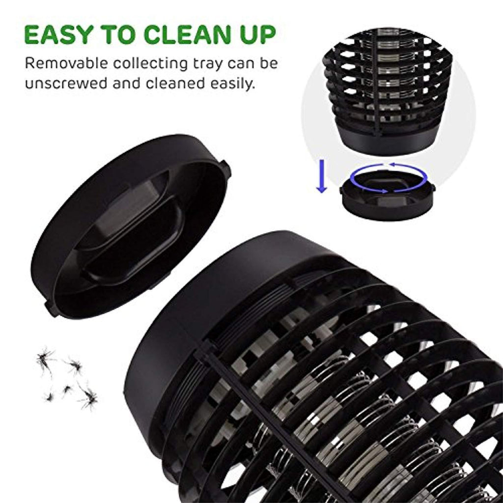 • EASY & CLEAN - Plug our insect killer in the 120-volt power outlet to create a pest-free zone by your own choice. Dead insects get collected at the tray of fly zapper at the bottom of the unit. Then their dead bodies can be effortlessly removed and cleaned.
