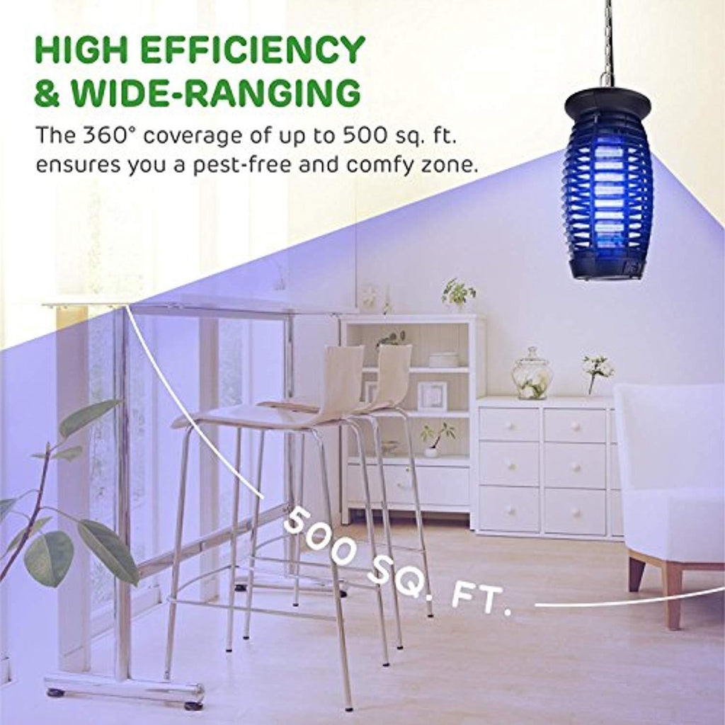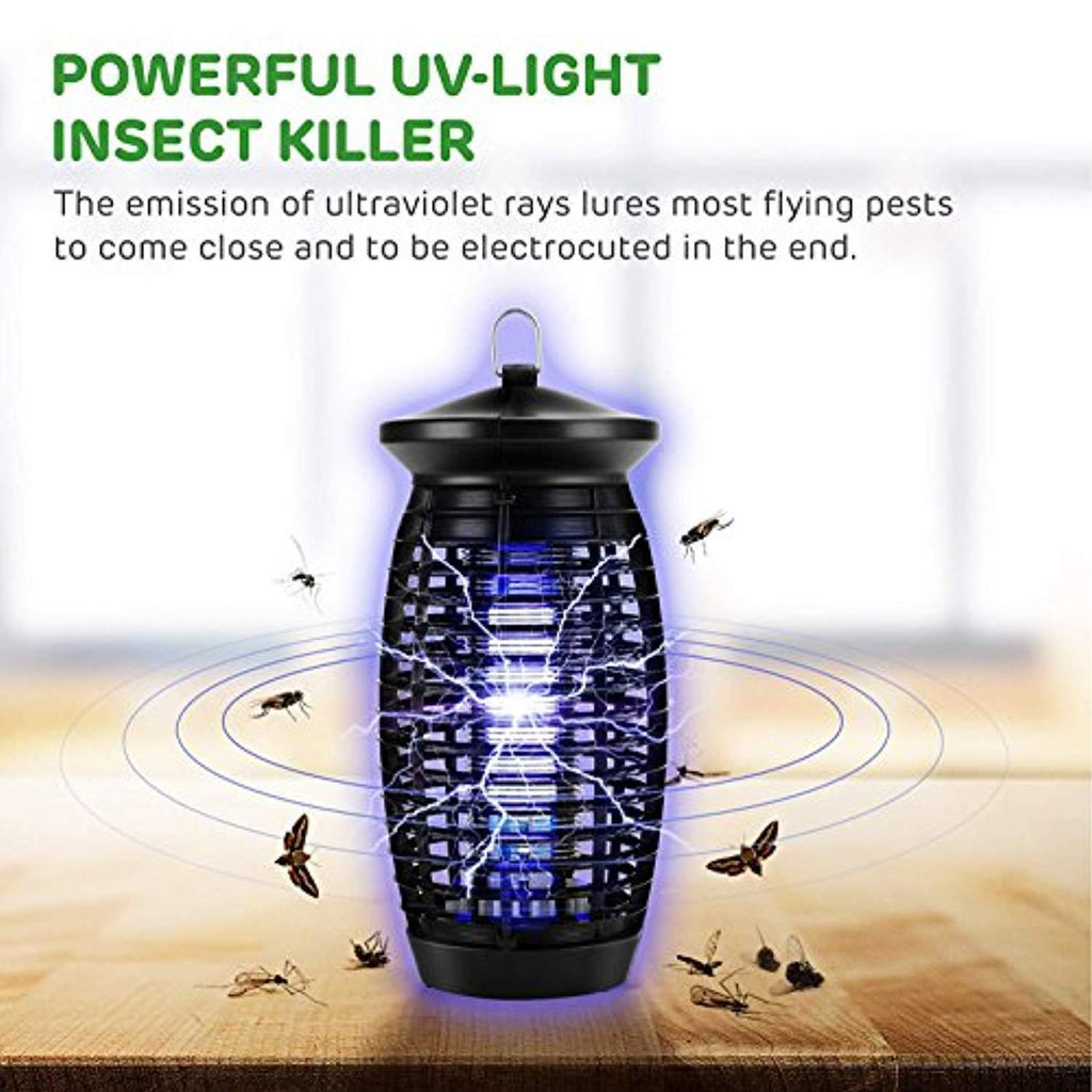 • EFFECTIVE FLY CONTROL - This bug zapper features a 15-watt high-intensity ultraviolet bulb that attracts all pesky flying insects into the fly zapper. The high-voltage grids will immediately electrocute mosquitoes upon contact by physical way. No chemicals, radiation or odor any more.