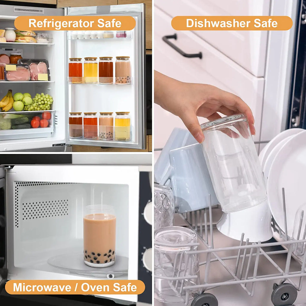 • Multi-purpose : The can shaped glassware Great for any Occasion, any hot and cold drinks. It is widely loved by families, kitchen, breweries, cafes, bars and restaurants. Great for tea,beer, boba bubble Pearl Milk Tea, soda, juice, iced coffee,iced drinks, smoothie, fruit juice or any other interesting holiday drinks.