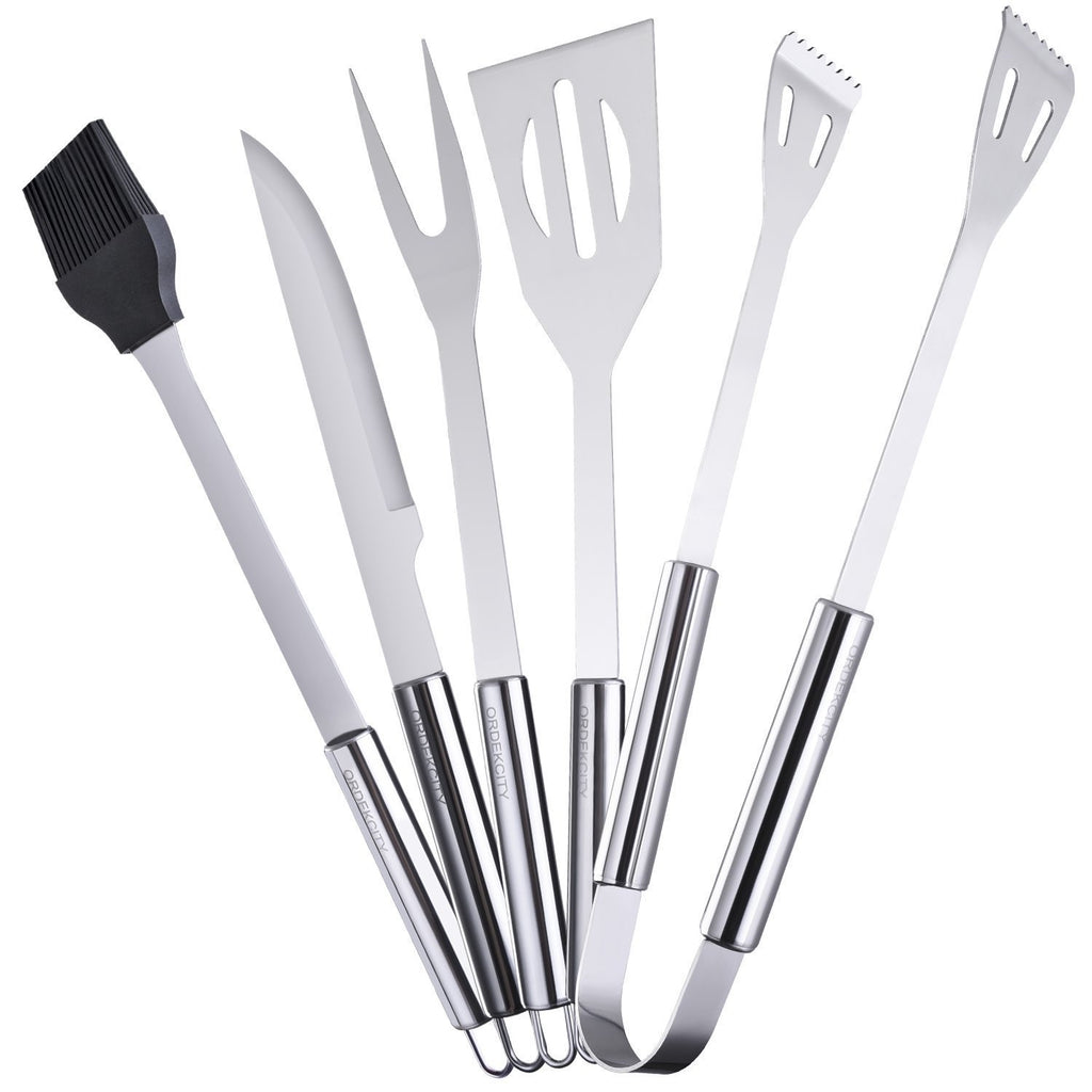 Ordekcity BBQ Grill Tools Set - 5 Piece Grill Accessories Stainless Steel Grill Utensils Set Barbecue Tongs, Complete Outdoor BBQ Accessories