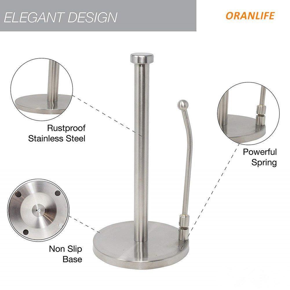 Paper Towel Holders by Oranlife Stainless Steel Vertical Kitchen Tissue Holder Counter Top for Kitchen Dining Room Bathroom