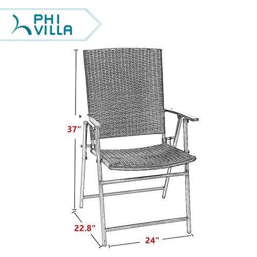PHI VILLA Patio Rattan Folding Chair Indoor Outdoor Wicker Chair, 2 Pack