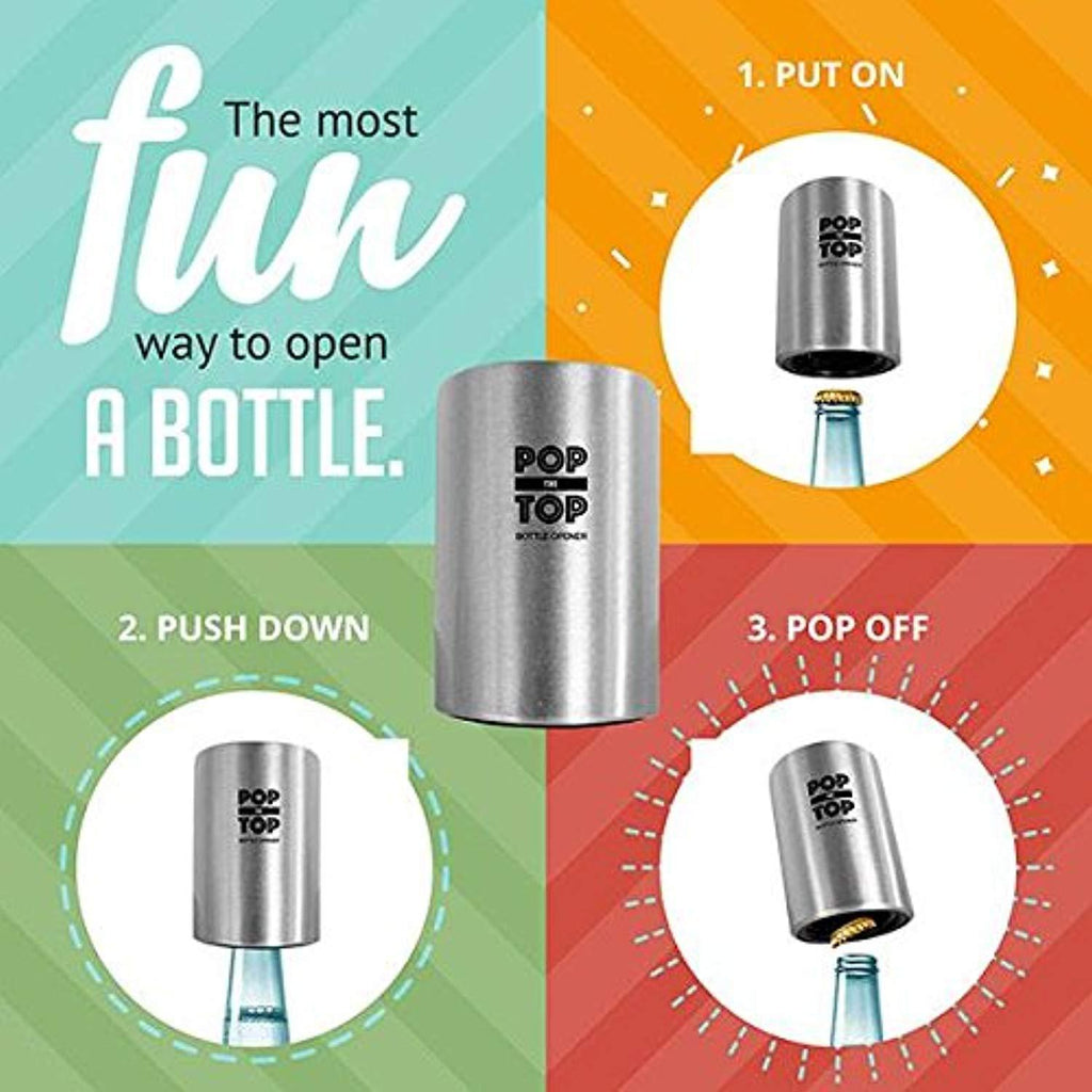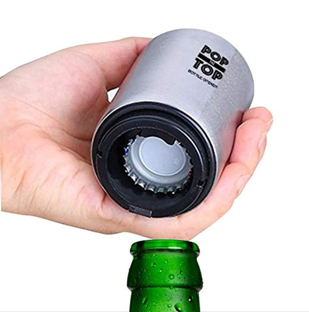 PoptheTop Automatic Beer Bottle Opener : (Stainless) - Great gift - Bottle cap collector best find! Push down & bottle caps pops off. No bending or damage to caps.