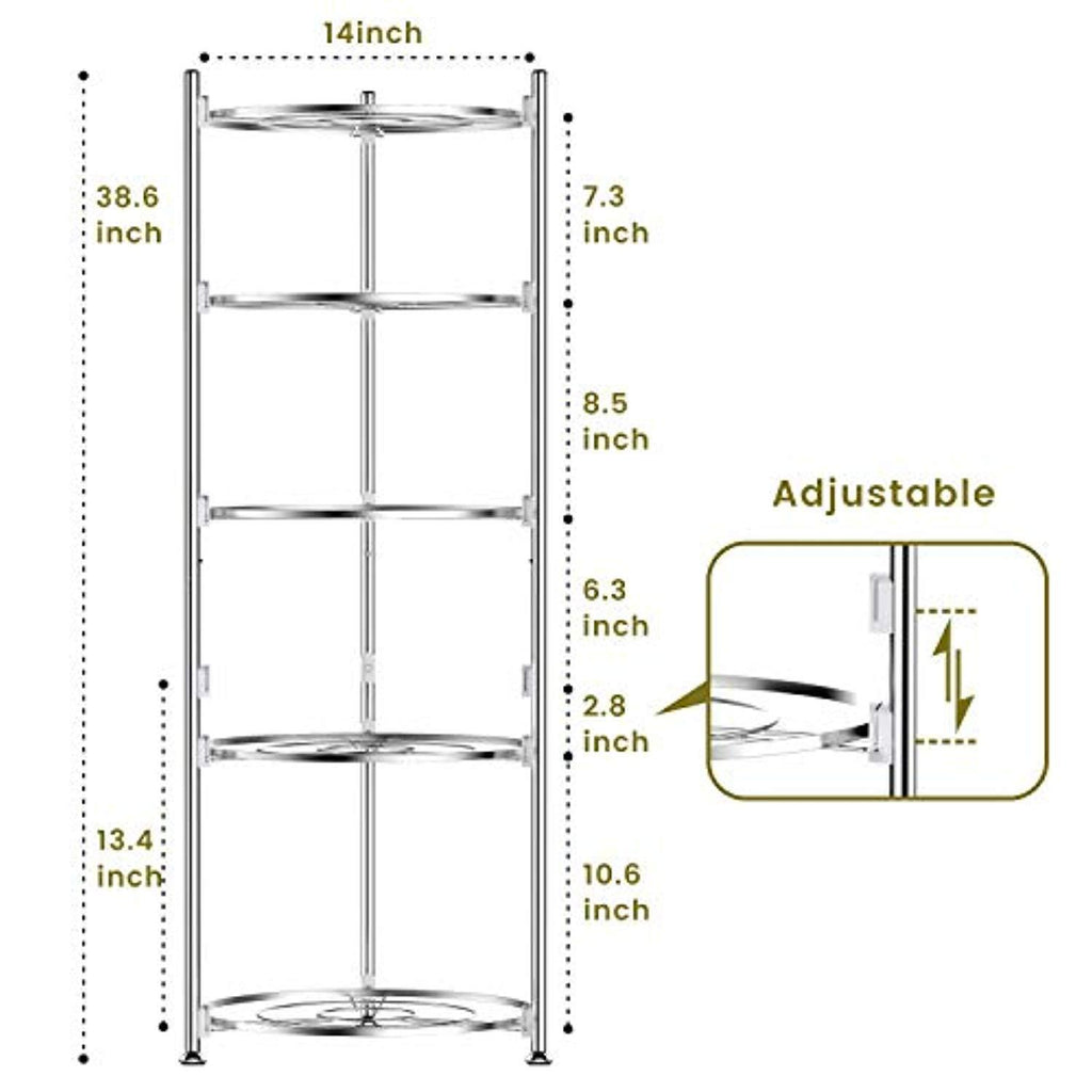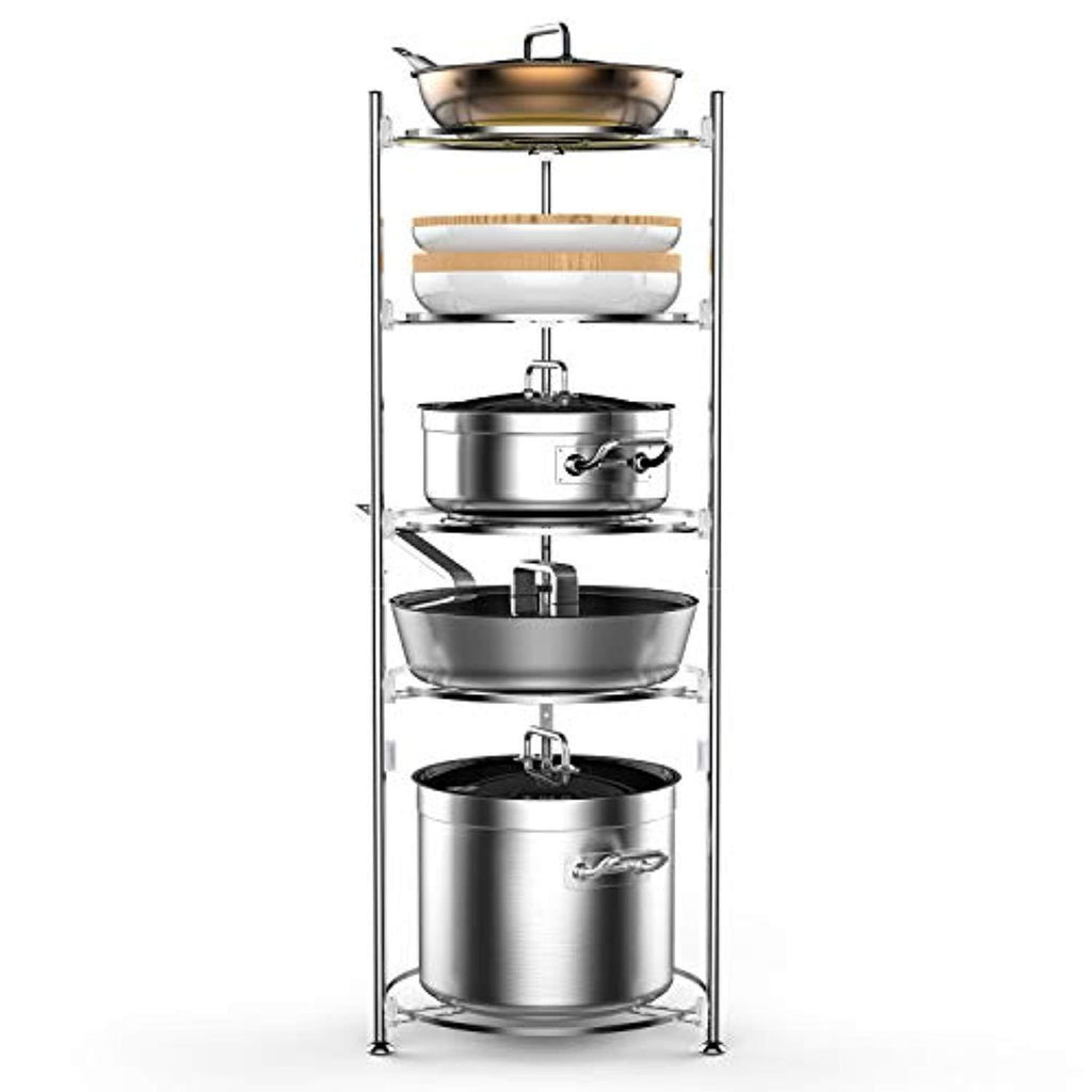 • FIT LARGE PAN AND POT: The height between 2 layers is different, the shortest 6.3 inches, the highest 13.4 inches, the fourth layer's position can be adjusted as your need. This pot holder fits pots, pans, CAST IRON skillets, griddles with lids from sizes small to large
