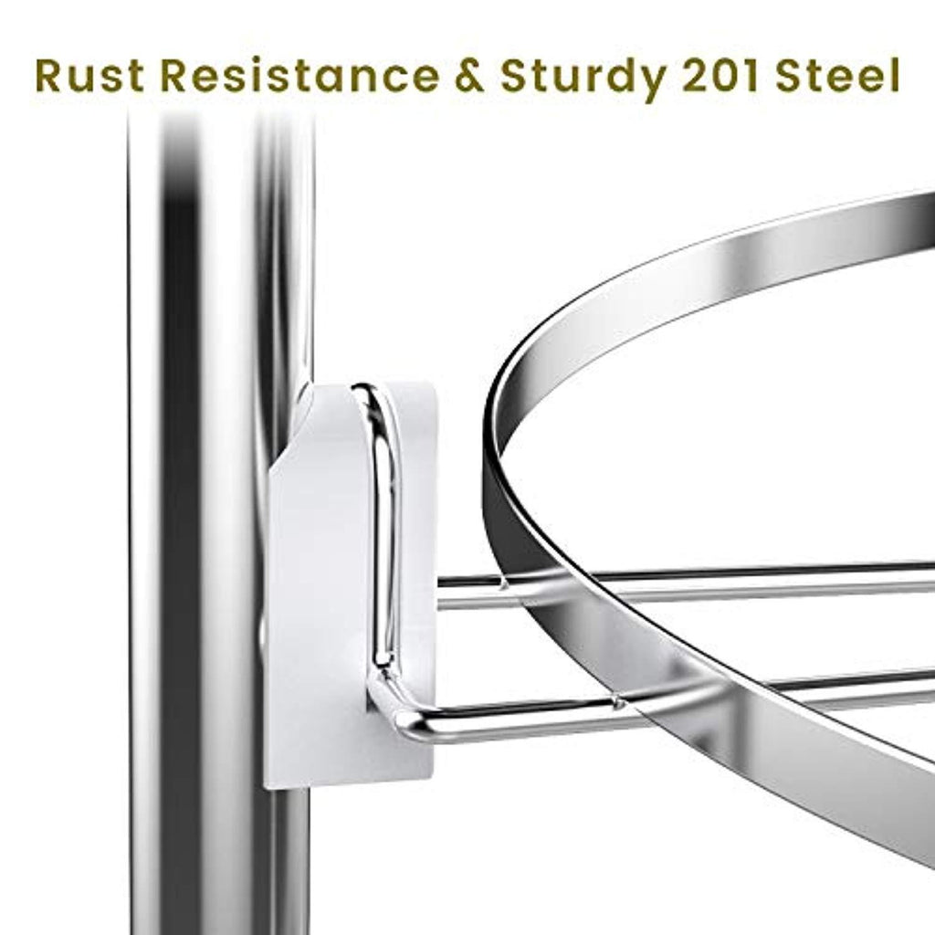• DURABLE CONSTRUCTION: Make of high quality stainless steel which is durable, rust-proof, and easy to clean. This kitchen organizer rack is firm enough to hold heavy duty cookware such as cast iron skillets and dutch ovens