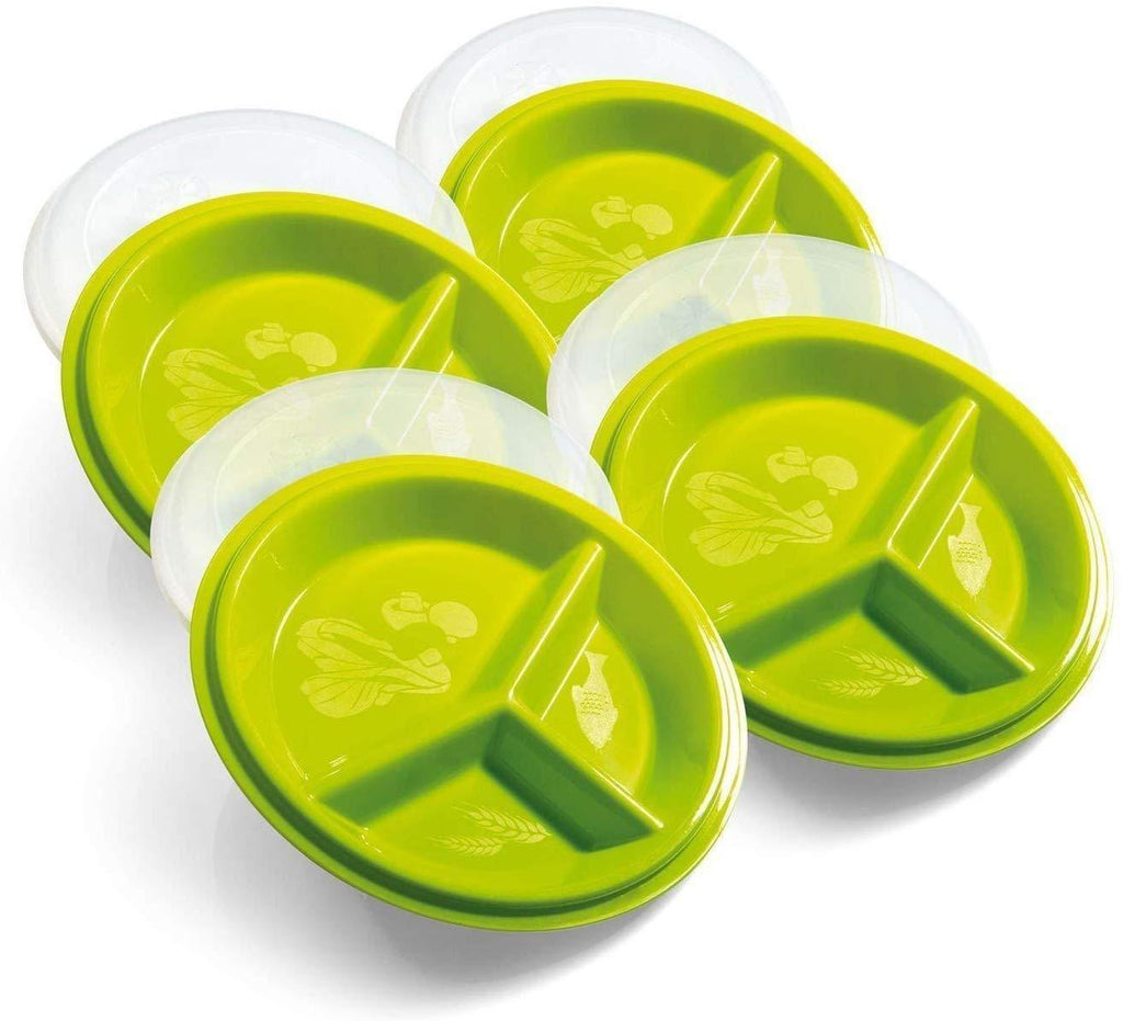 Precise Portions 2-Go Healthy Portion Control Plates, Pack of 4 – BPA-Free 3-Section Plate with Leak-Proof Lids, Dishwasher, Microwave Safe