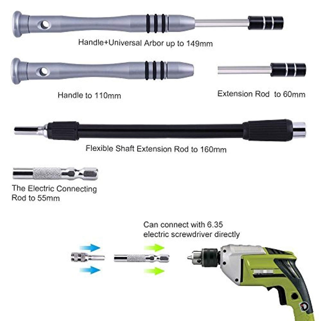 • FLEXIBLE SHSFT: an extra extension rod of up-to-60mm adjustable length and a flexible soft shaft are offered, allowing you to reach screws that are completely inaccessible, great for stereo work, also helpful to solve puzzle about some blind angle screws
