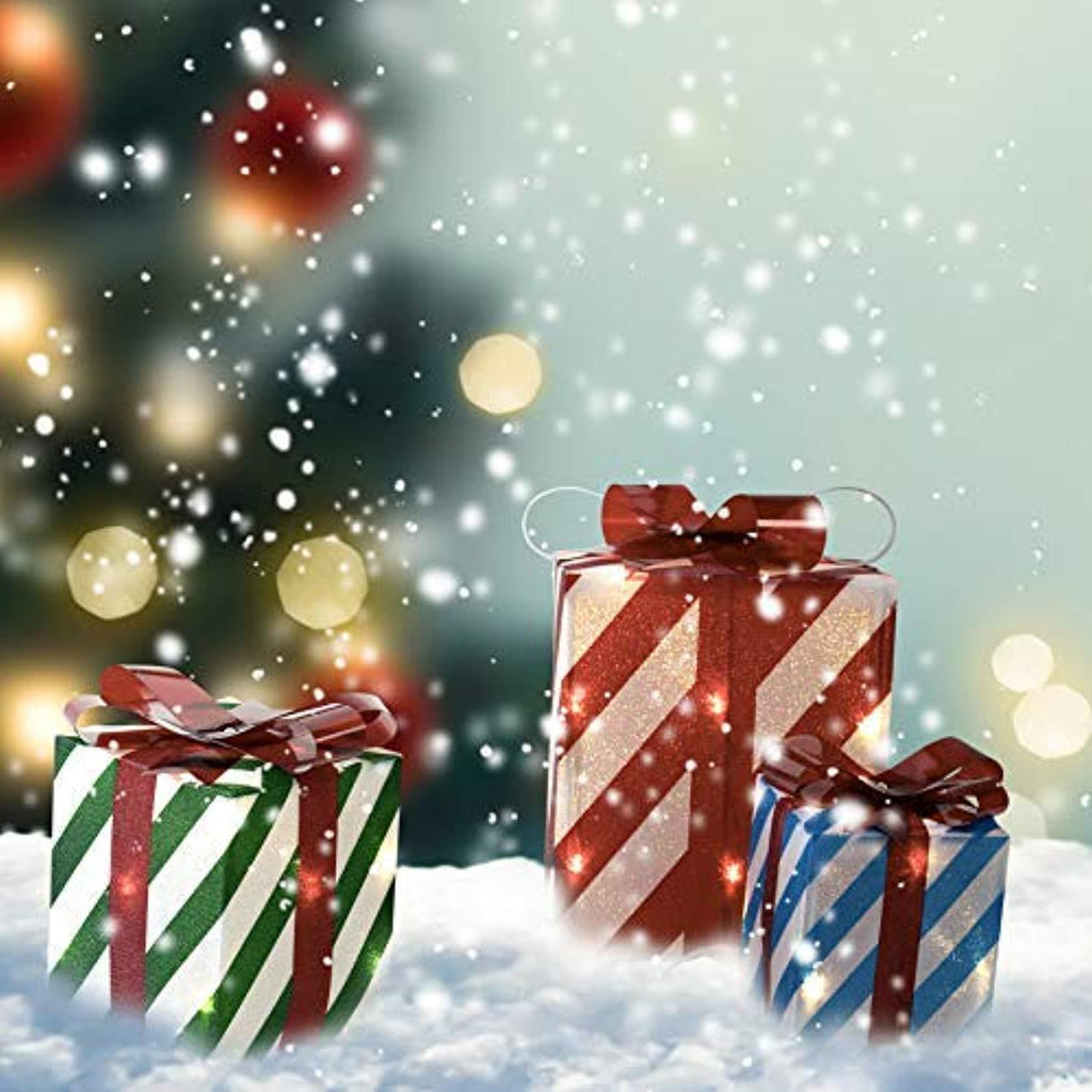 Prextex Set of 3 Christmas Lighted Red Green and Blue Gift Boxes Small Medium and Large Present Boxes Best Christmas Yard/Home Décor
