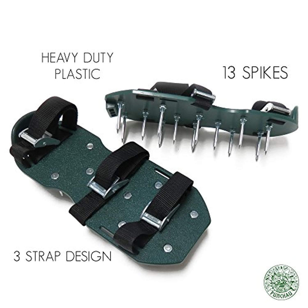 Punchau Lawn Aerator Shoes w/Metal Buckles and 3 Straps - Heavy Duty Spiked Sandals for Aerating Your Lawn or Yard