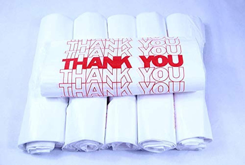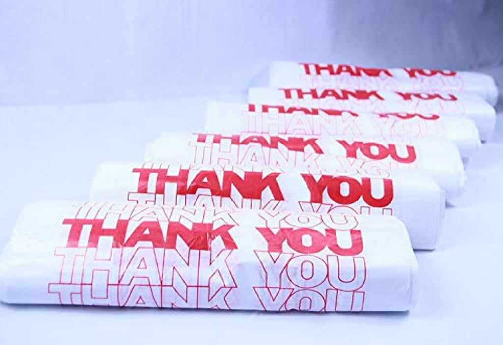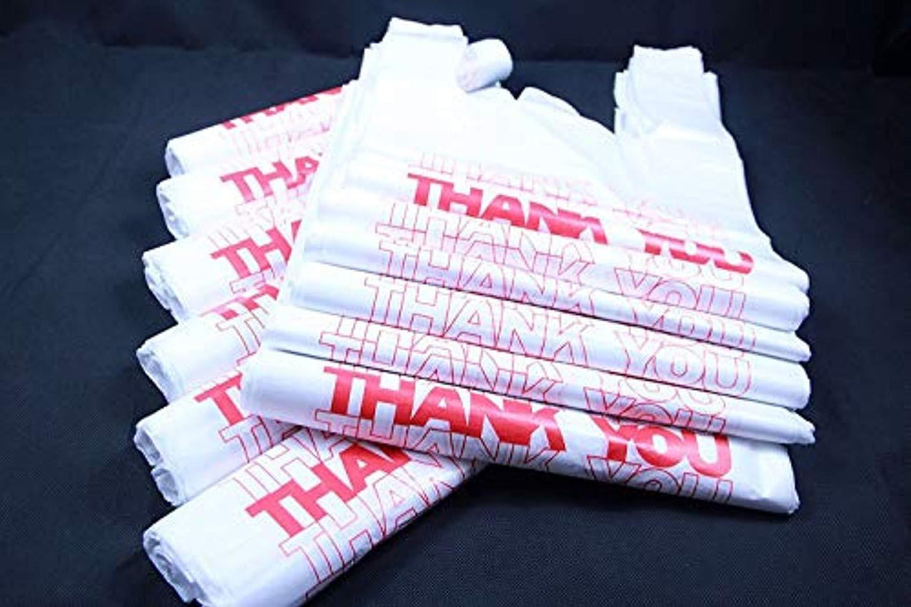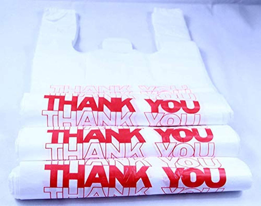 • R Noble, Thank You Bags, Plastic Bags, Reusable Bags, Grocery Bags, T-Shirt Carryout Bags, 1/6, 11.5" * 6.25" *21", 15 mic, 600 Count