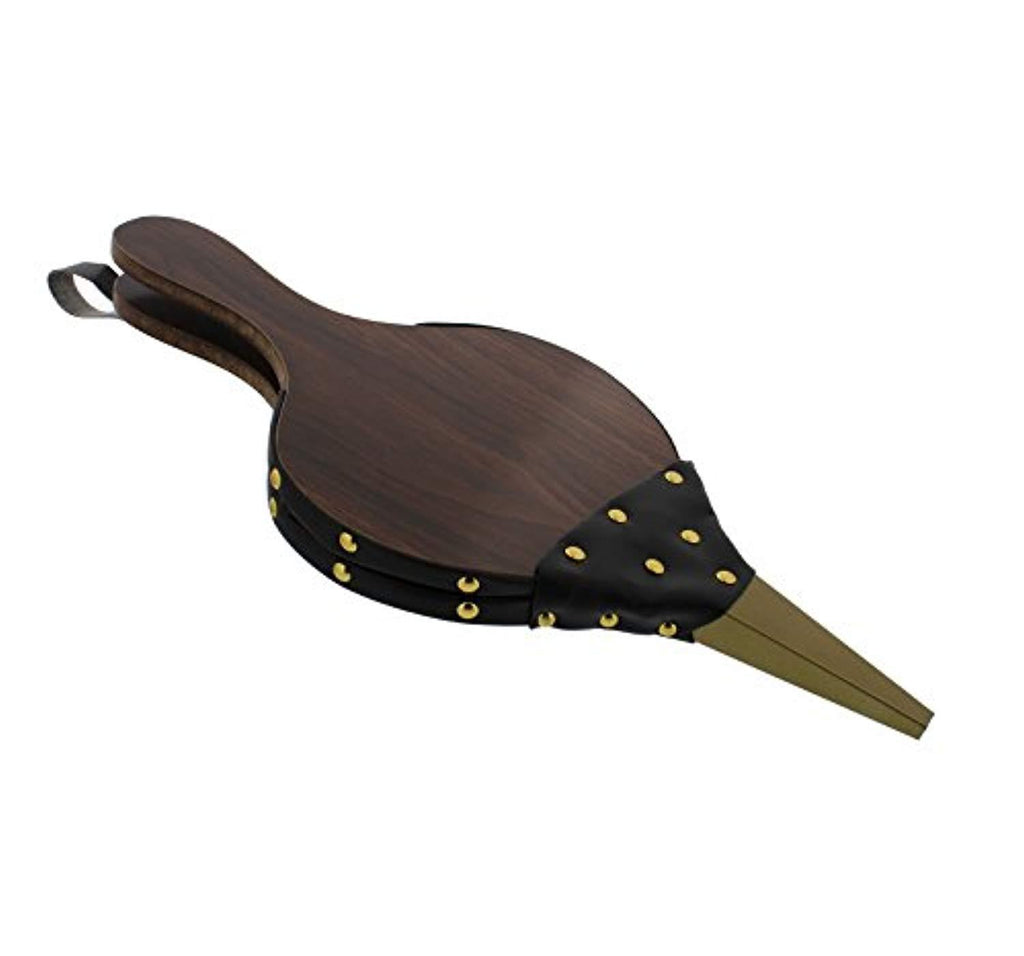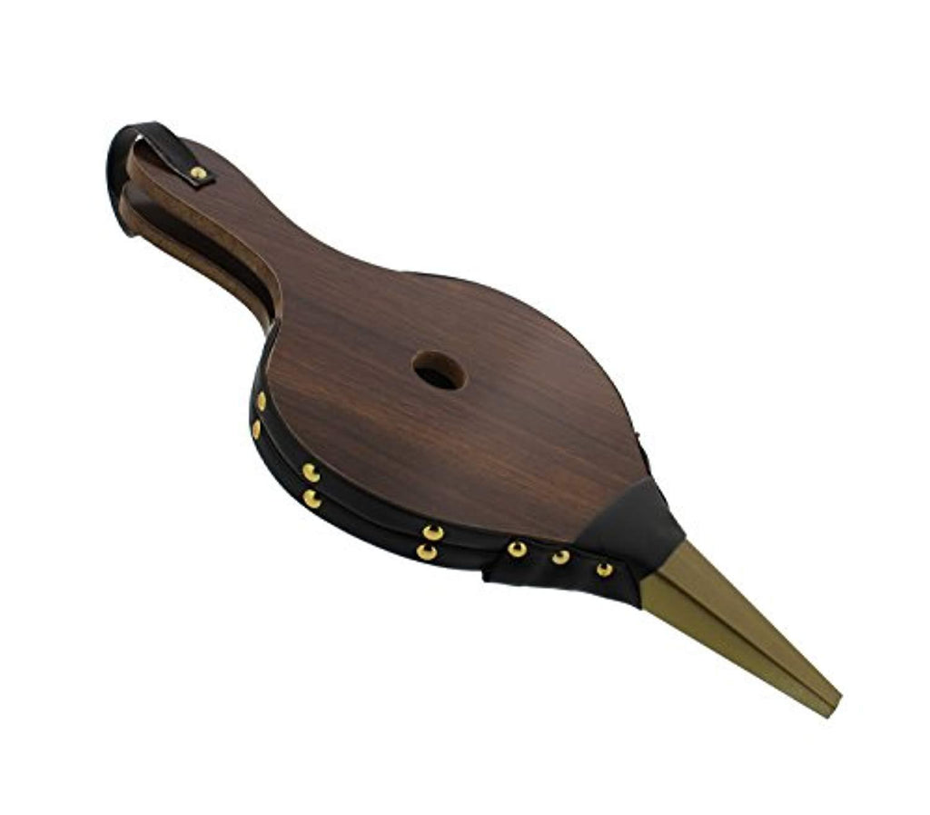 • BUILT TO LAST: Constructed from sturdy wood panels and synthetic leather accordion attached to the panels with metal rivets; All hardware is metal – no plastic parts that could melt when exposed to heat; 15.75” x 1” x 7” inch (40cm x 2.5cm x 17.8cm) overall dimensions with 5-inch (12.7cm) handle, 8-inch (20.3cm) accordion, 3-inch (7.6cm) nozzle with 1/2-inch (1.3cm) nozzle circumference