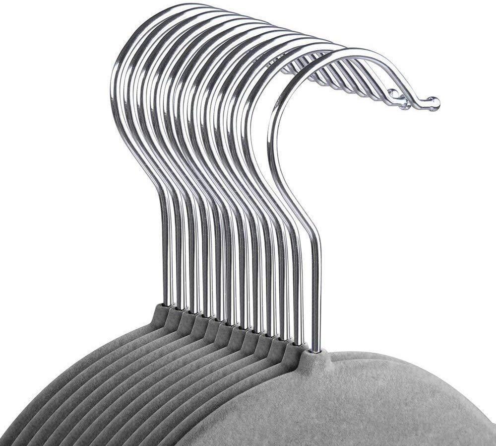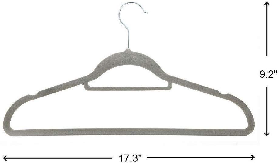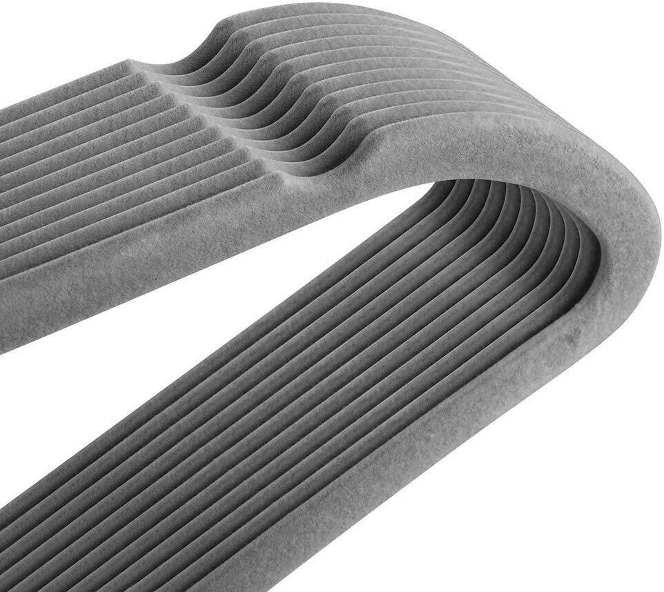 Relentless Group 50-Pack Non-Slip Sturdy Velvet Hangers with Accessory Bar. Ultra-Thin and Space Saving (Grey)