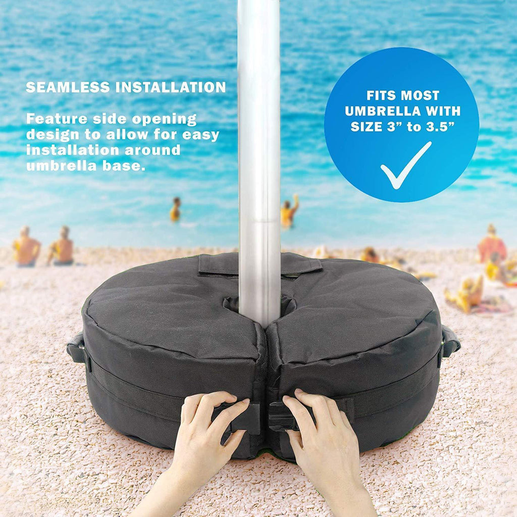 • ✔️ SOLUTION FOR FALLING UMBRELLA — Round-shaped design umbrella base weight bag to help keep a patio umbrella stable. Holds approx. 80lbs of sand. Simply add sand into the bag after placing the bag on the base of the umbrella and enjoy a peace of mind during windy weather.