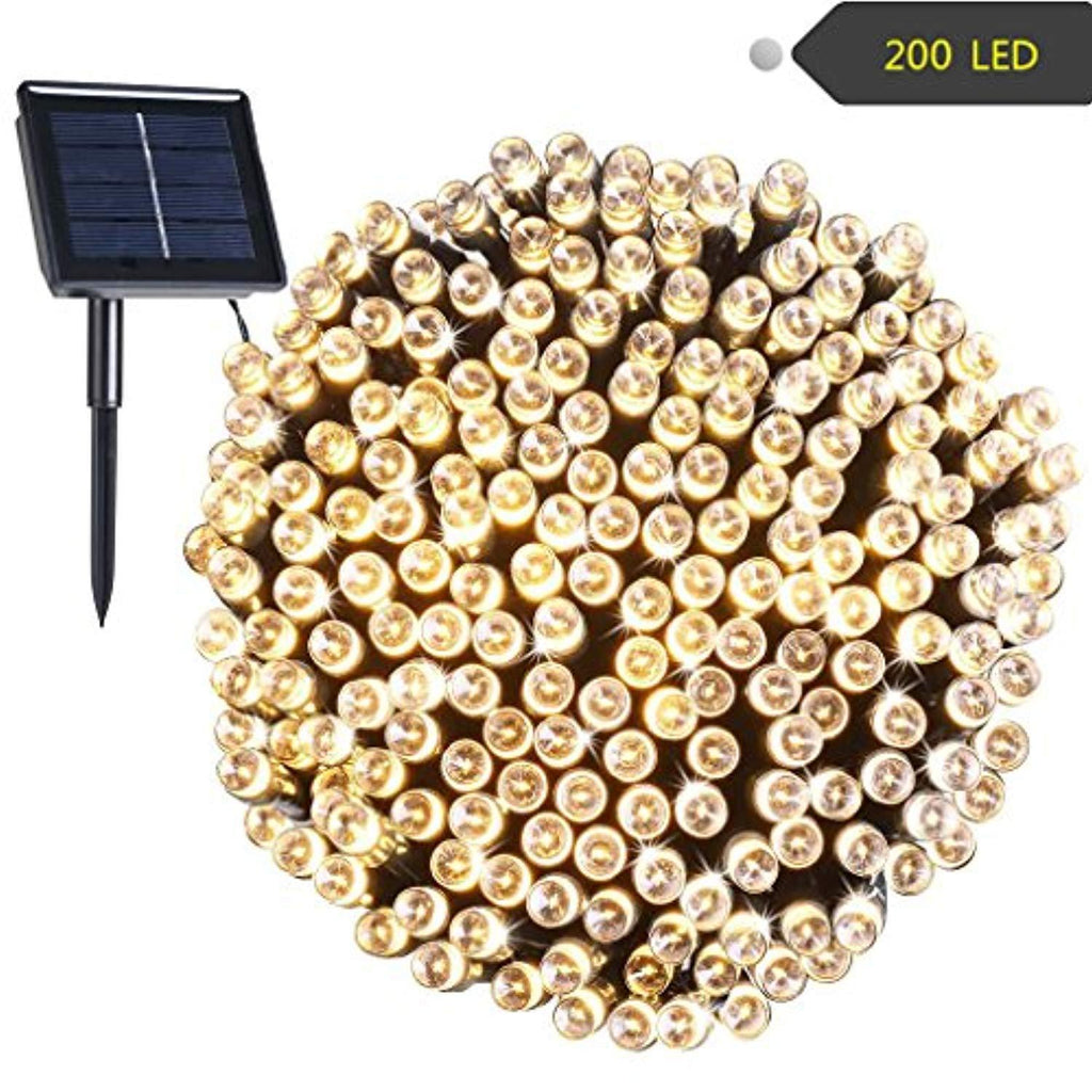 RockBirds Solar String Lights 72ft 22m 200 LED Certified by FCC and Rohs, Outdoor String Lights Waterproof IP65 Decorative Lights for Halloween, Wedding, Outdoor, Homes, Party (Warm White)